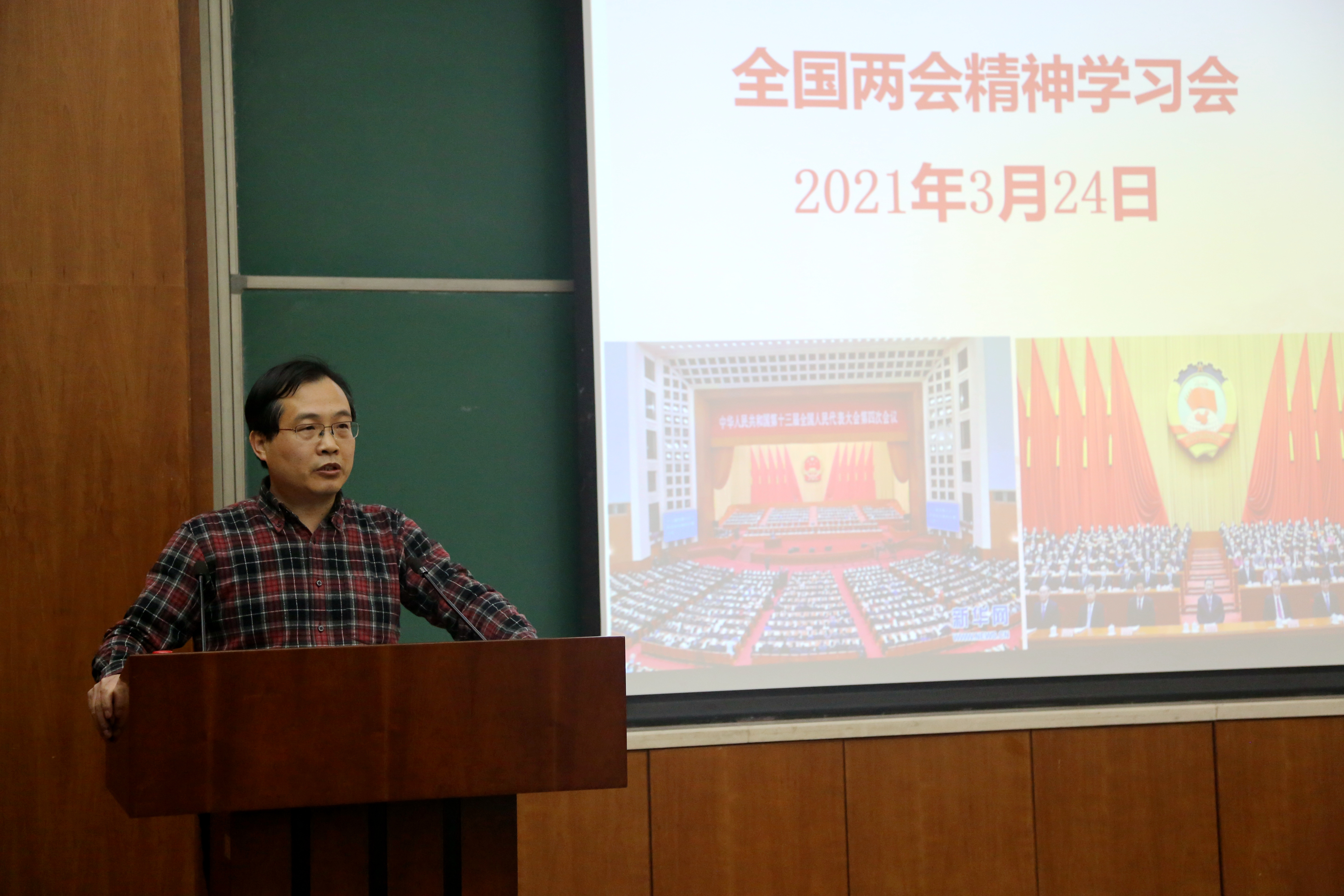 随后,蔡荣根介绍了李克强总理政府工作报告的主要内容,即2020年七个方面取得的工作成绩、“十三五”时期发展成就和“十四五”时期主要目标任务、2021年八个方面的重点工作。他还向大家介绍了全国人大副委员长王晨作的“关于《全国人民代表大会关于完善香港特别行政区选举制度的决定(草案)》的说明”的报告主要内容。另外,蔡荣根结合“十四五“规划和2035年远景目标纲要中第一、第二篇中与科技创新相关的内容与研究所的未来发展,从强化国家战略科技力量,激发人才创新活力和完善科技创新体制机制谈了自己的学习体会。