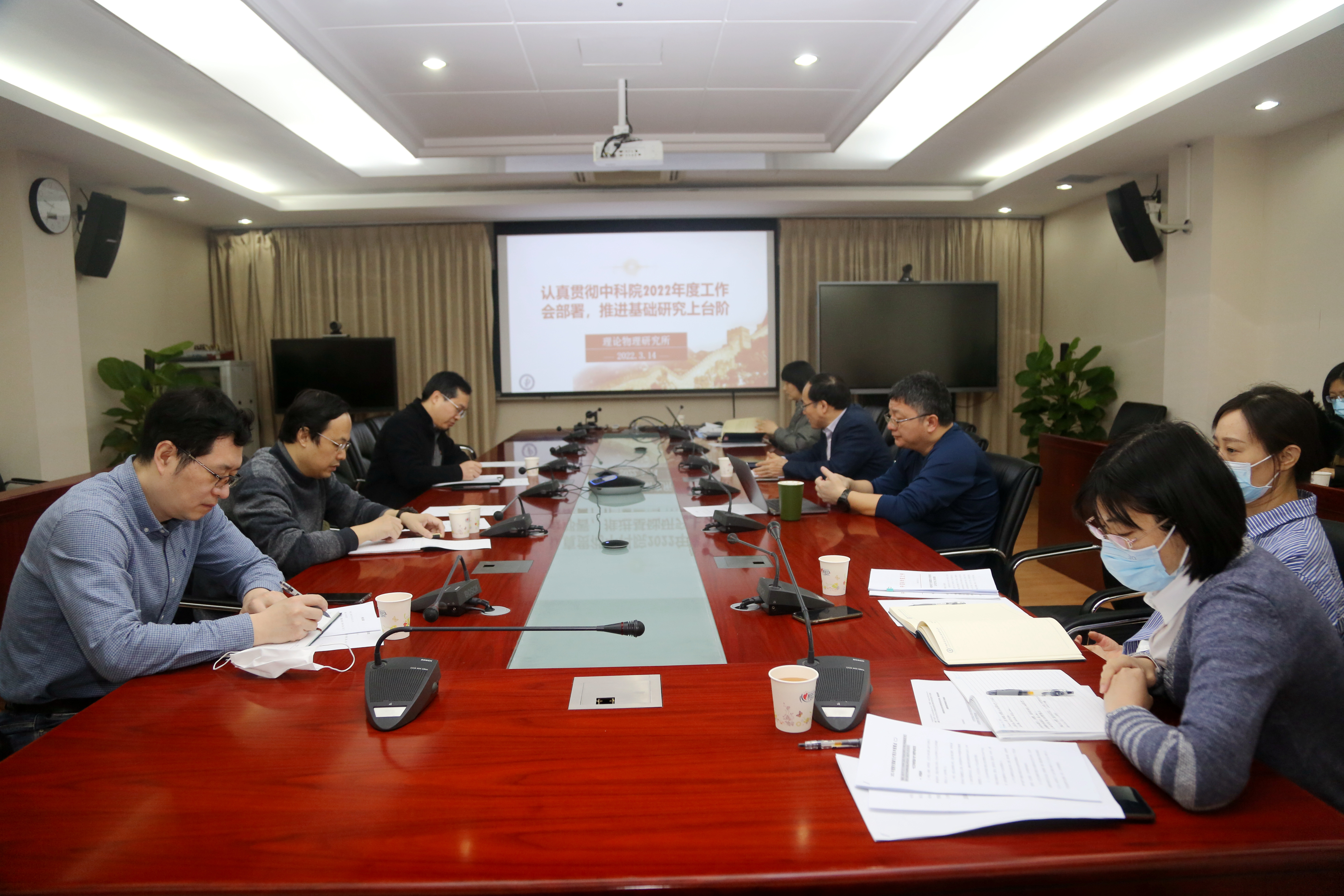 3月14日,理论物理所召开所务扩大会,认真学习贯彻2022年院工作会议精神,结合基础研究实际,部署落实举措。领导班子成员、党委委员、纪委委员、支部书记、中层以上干部参加会议。会议由所长、党委书记蔡荣根同志主持。