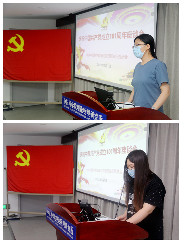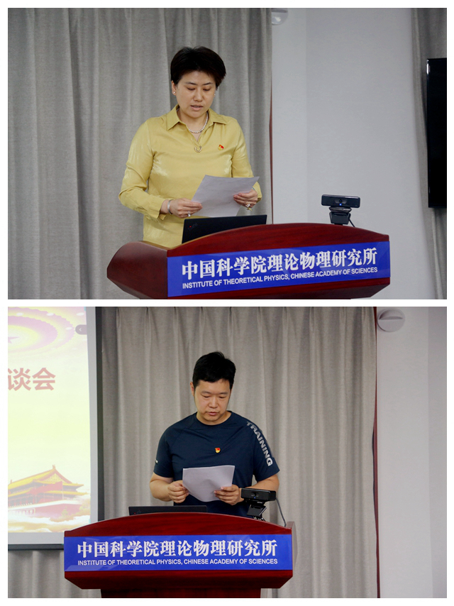 2022年7月1日上午,理论物理所党委隆重召开庆祝中国共产党成立101周年座谈会,传达学习中科院庆祝建党101周年表彰交流会暨党组书记侯建国专题党课报告精神。全所在京党员、科研人员、入党积极分子、40岁以下青年职工现场参加座谈,部分党员通过腾讯视频方式参加会议。座谈会由党委书记、所长蔡荣根主持。