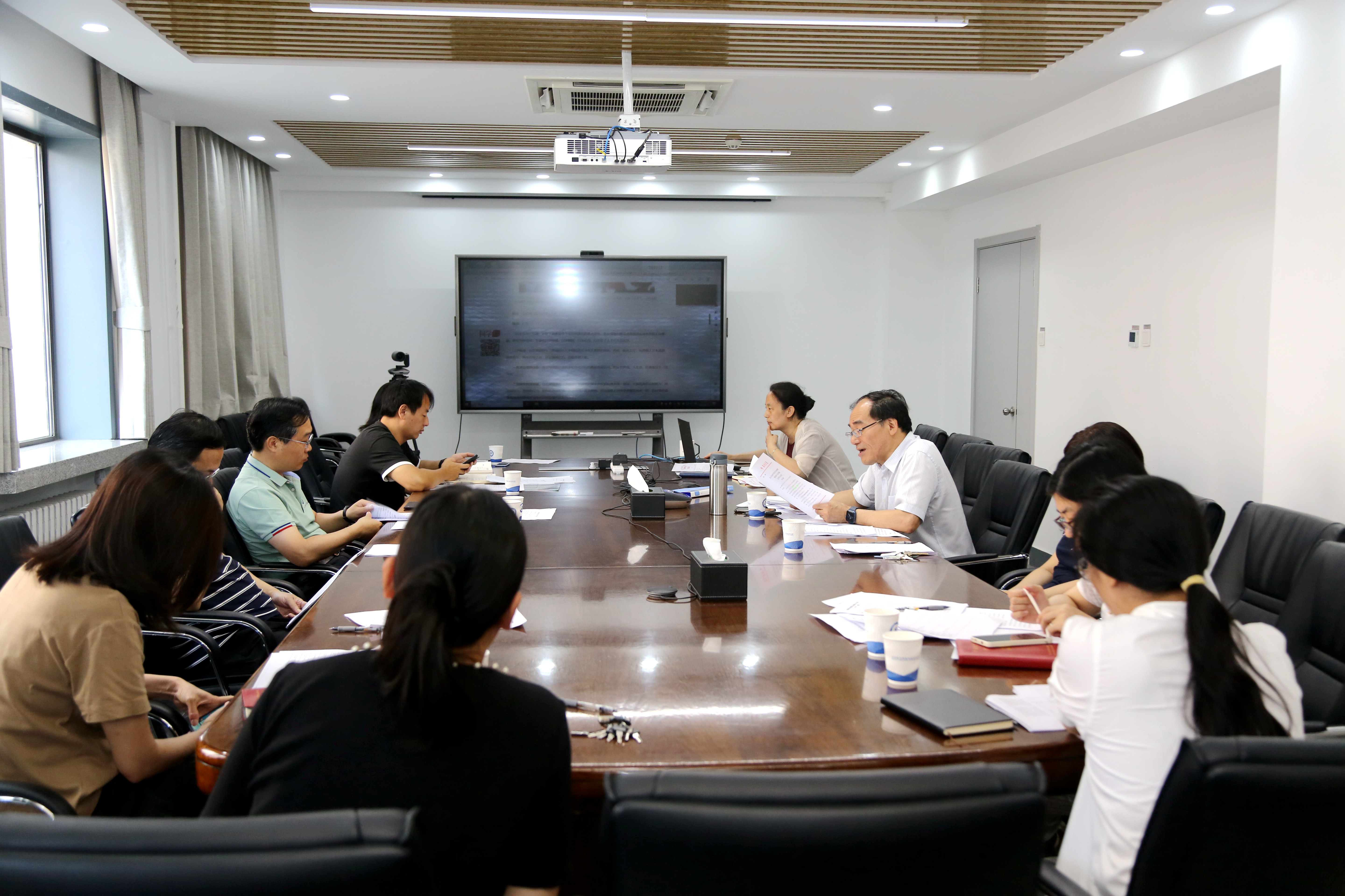 8月15日上午,理论物理所召开2023年度第九次党委会暨第七次党委理论学习中心组专题学习会,党委委员、所班子成员、副处长以上干部参加学习,党委书记、所长蔡荣根主持并领学。