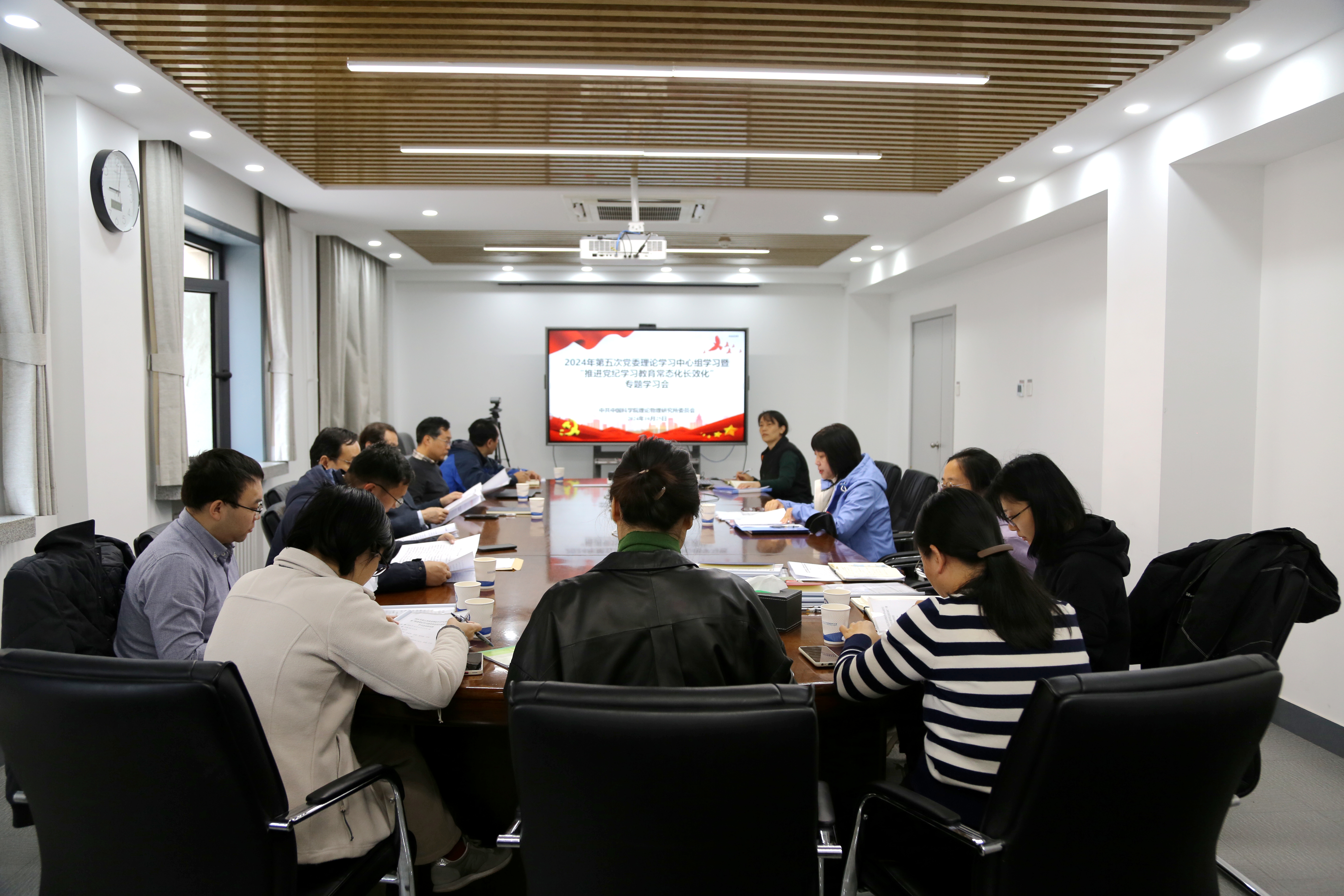 10月25日上午,理论物理所召开2024年第五次党委理论学习中心组学习暨“推进党纪学习教育常态化长效化”专题学习会。会议由党委书记、副所长樊志军主持。