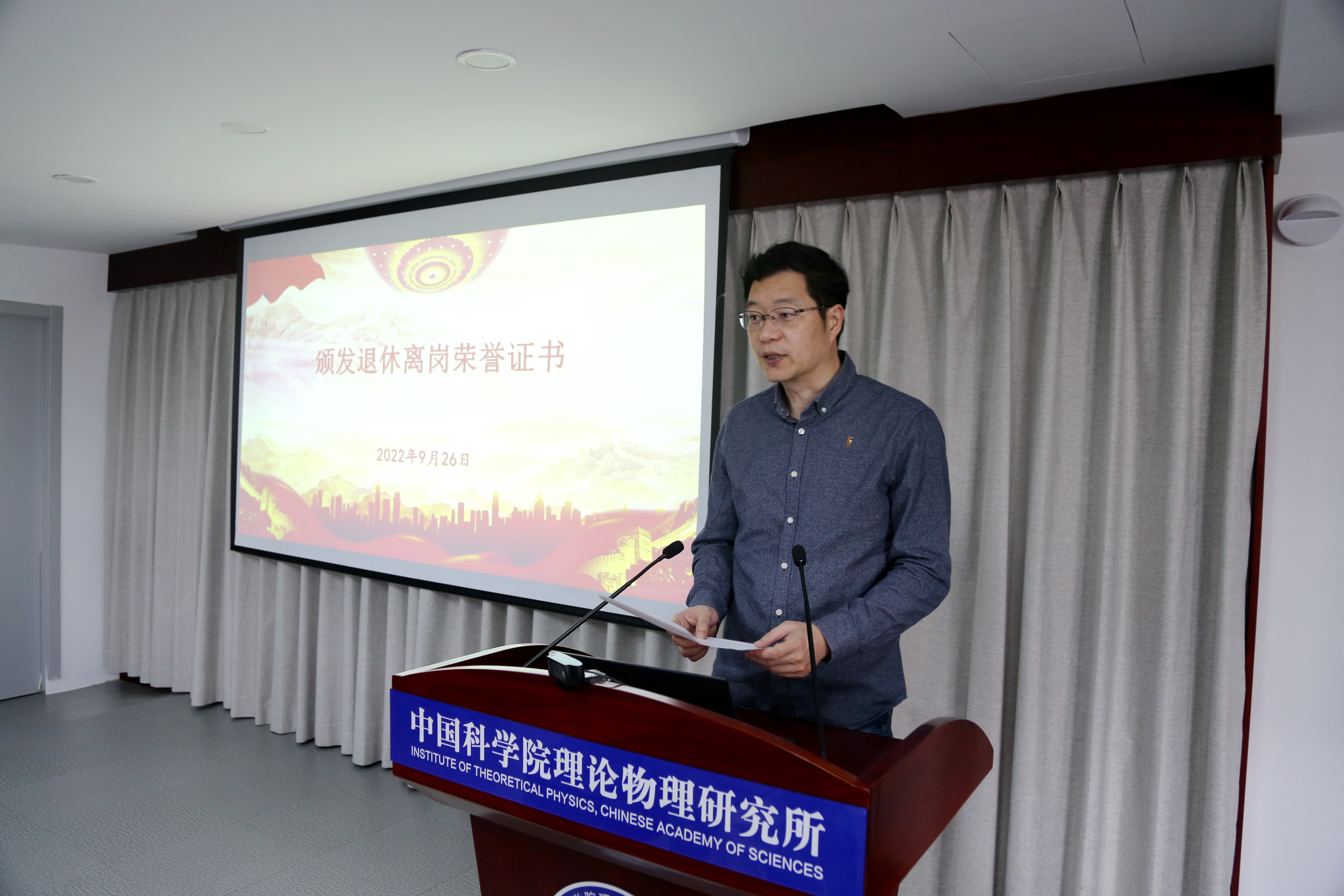 副所长、纪委书记王延颋宣读颁发荣休证书的党委会决定