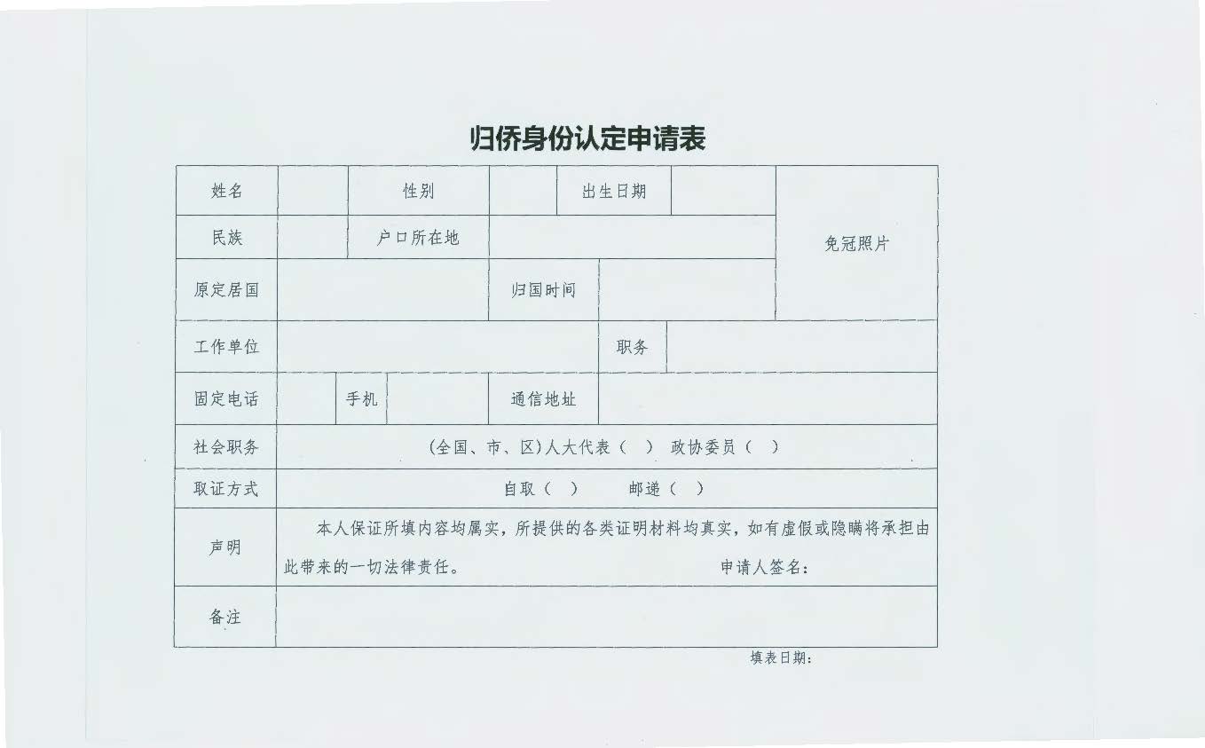 归侨身份认定申请表