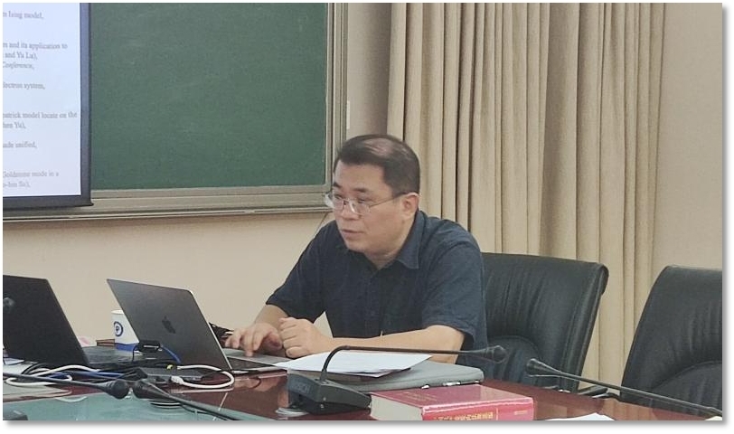 会议伊始,支部书记于江浩同志结合总书记在院士大会上的发言,以“学习周光召先生严谨治学精神促进科研攻关”为主题讲专题党课报告。他分享了周光召先生在相对论性螺旋散射振幅概念、赝矢量部分守恒(PCAC)、闭路格林函数、场论大范围拓扑性质等方面的重要贡献,带领大家对周光召的科研精神进行了深刻学习。于江浩同志指出,作为年轻一代,不仅要学习周光召先生的事迹,更要传承他的科学精神。
