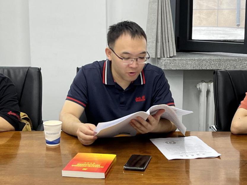 接下来,纪检委员李理领学了《中央和国家机关党员干部违纪违法典型案例警示录》和《违纪行为典型案例》两份警示教育文件。李理具体介绍了违反政治纪律、组织纪律、群众纪律等的一些典型案例,教育引导支部党员做到学纪、知纪、明纪、守纪,不断增强责任担当和廉洁自律意识,积极营造风清气正的环境。大家深受这些典型案例触动,并就此展开深入讨论。于江浩指出,要从这些典型案例汲取深刻教训,不断加强对《中国共产党纪律处分条例》的学习和理解,做到心有所戒、行有所止,警钟长鸣。