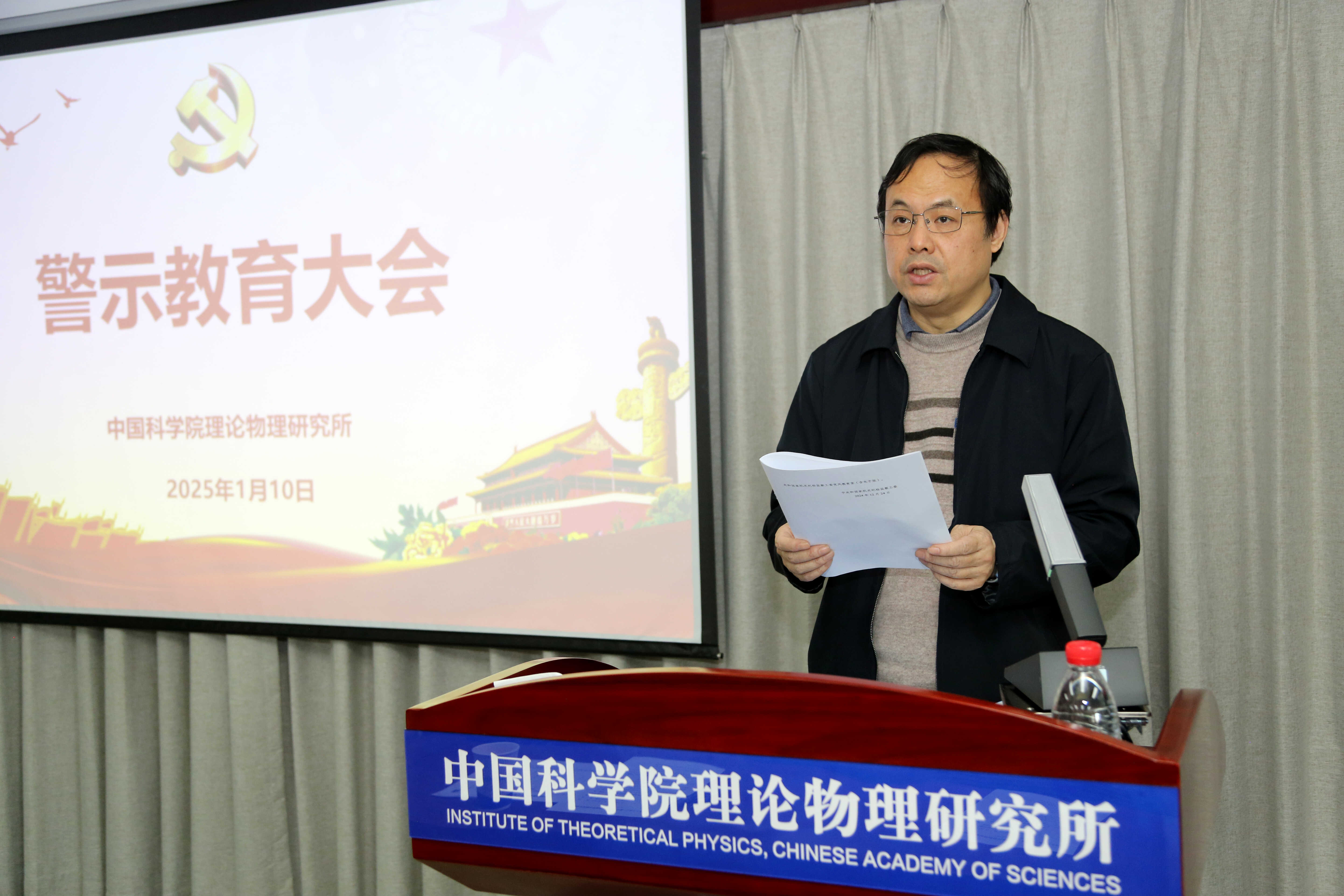 2025年1月10日上午,理论物理所召开全所警示教育大会。会上,纪委书记周宇峰通报了中央和国家机关违反中央八项规定精神典型案例。全所党员、职工、博士后参加了会议。