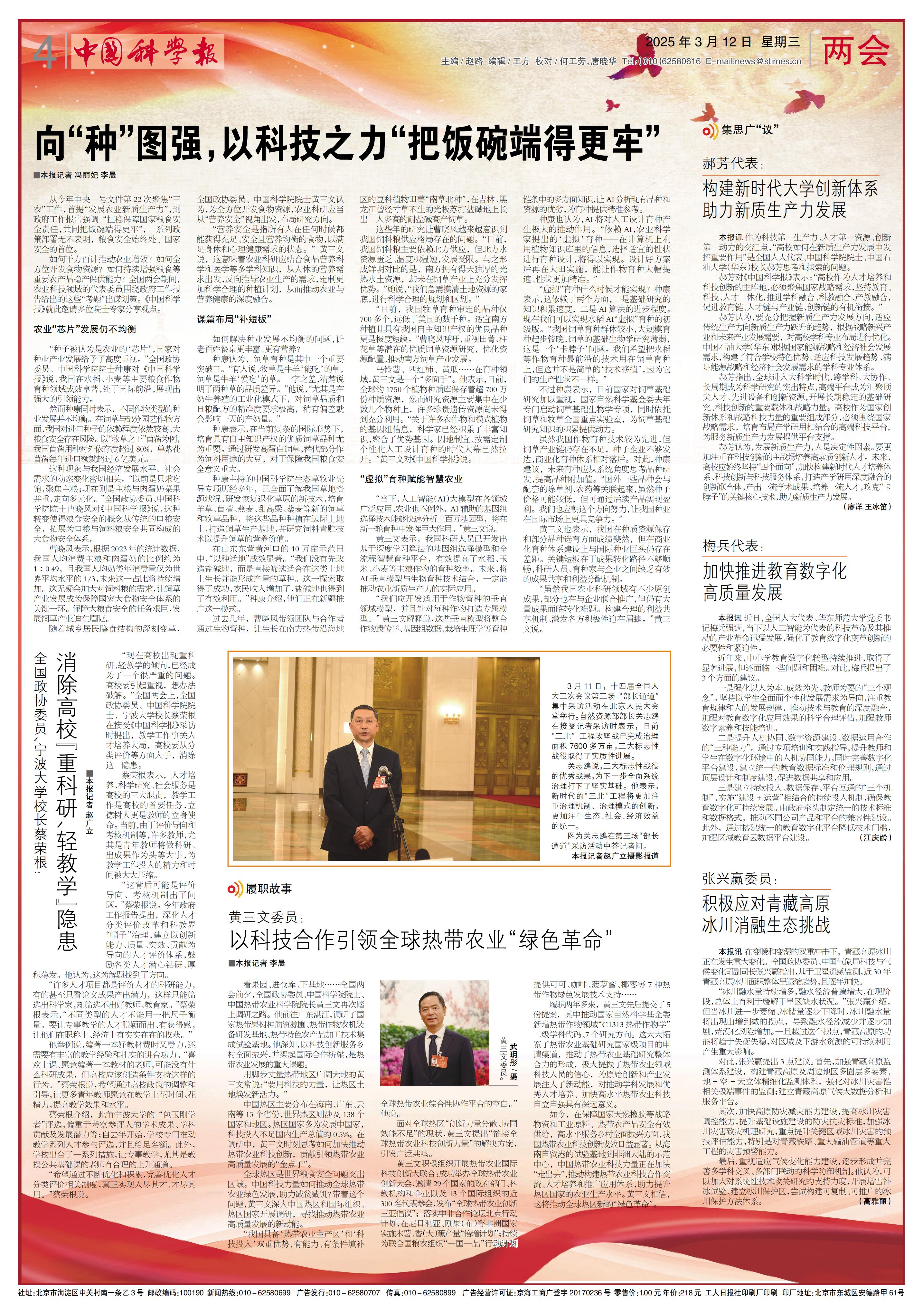 载于《中国科学报》 (2025-03-12 第四版 两会)