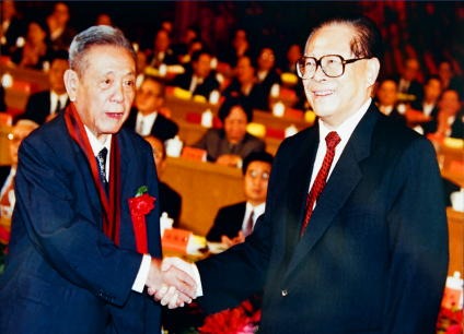 1999年9月18日,江泽民主席为彭桓武颁发“两弹一星”功勋奖章。