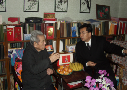 2004年1月,时任中国科学院副院长白春礼看望彭桓武。