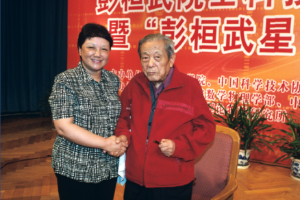 彭桓武与中国科协党组书记邓楠在“彭桓武星”命名仪式上。