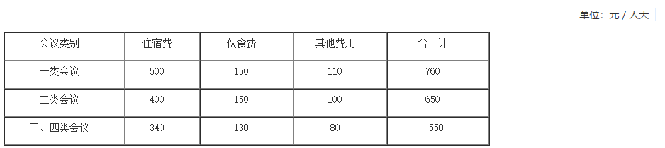 会议报到和离开时间,一、二、三类会议合计不得超过2天,四类会议合计不得超过1天。