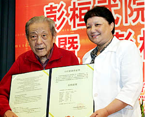 邓楠向彭桓武颁发“彭桓武星”命名证书