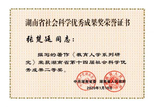 近日,湖南省委、省政府发布了《关于表彰湖南省第十四届社会科学优秀成果、第七届优秀社会科学专家、第五届优秀青年社会科学专家的通报》,此次湖南省社会科学优秀成果奖评出一等奖20项、二等奖50项、三等奖30项,总计100项。我校共32项成果获奖,其中我院有6项成果获奖,分别是:刘铁芳、钟毅平获得一等奖,张楚廷、钟云华获得二等奖,王卫华、谢家树获得三等奖。