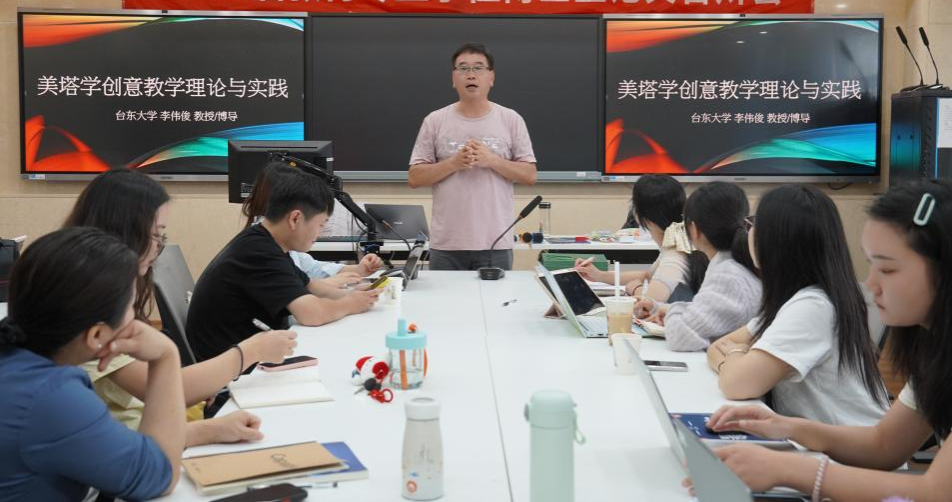 (通讯员 阮珍宁)6 月 24 日下午,台湾台东大学教育学系李伟俊教授应我院邀请,为师生们带来了一场主题为 “美塔学创意教学理论与实践” 的精彩学术讲座。李伟俊教授是台湾彰化师范大学特殊教育博士、美国哈佛大学博士后,在教育领域有着深厚的学术造诣和丰富的实践经验。本次讲座由刘德华教授主持,院长刘铁芳以及学院众多师生齐聚一堂,共同聆听这场充满创新与智慧的学术盛宴。