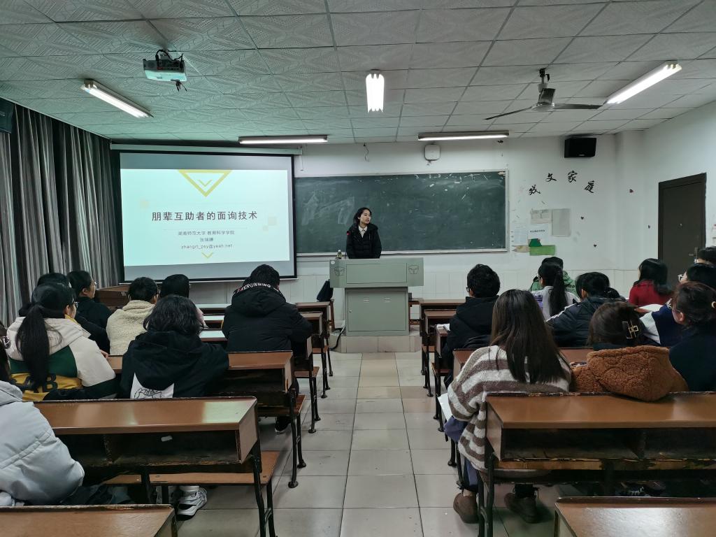 (通讯员 何芳 喻帅 王雪)11月26日晚,教育科学学院学工办于张公岭校区综合楼703教室举行2020级朋辈心理辅导员培训会第二讲。此次会议主讲人为心理学系讲师张瑞婷老师,教科院2020级年级干部及全体朋辈心理辅导员到场参加。
