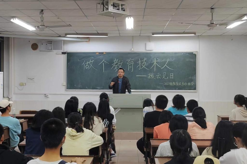 全体22级同学聆听学姐们的分享,积极地提出现阶段遇到的问题,学姐们都耐心地做出了解答。刘迪对会议进行总结,回答了同学们提出的专业问题,并鼓励同学们通过专业引导系列活动,找到自己在大学的定位,明白教育技术的内涵和意义,做一个合格的“教育技术人”。