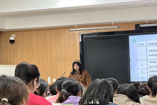 蒋璧如将创新创业大赛分为学科类、创新创业类、体育竞赛类三种类型,其中重点介绍了“大创”“大挑”“小挑”“创青春”“互联网+”等比赛。她采用讲解与问答相结合的方式带领同学们了解以上赛事的相关事项,并借助坐标轴梳理比赛时间线,帮助同学们树立更清晰的认知。同时,她结合自身经历详细解释了参赛流程、队友选择等细节问题,明确各赛事之间的区别与联系,增进同学们对创新创业大赛的了解。