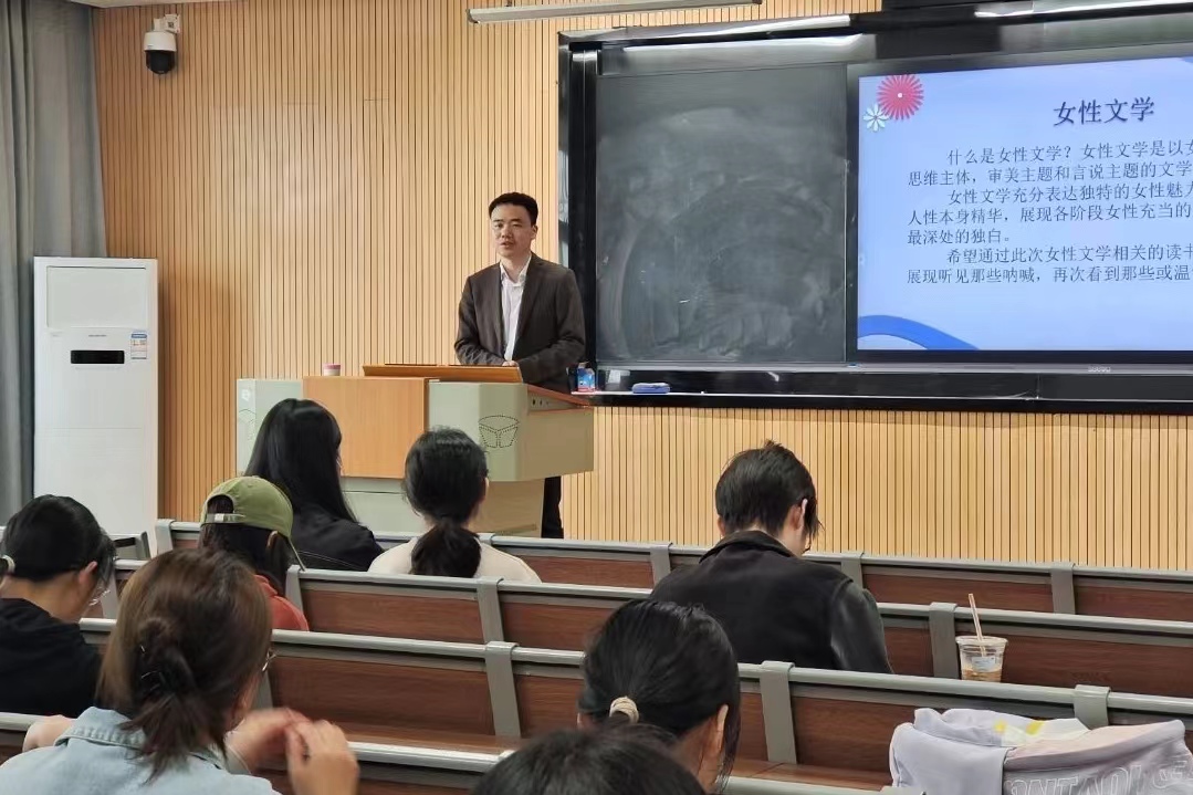 周俊凡以“女性文学”为出发点,分享了自己对女性文学的理解和思考,并与同学们共同审视文学中的女性人物,剖析女性文学的发展历程及蕴含的价值意义。