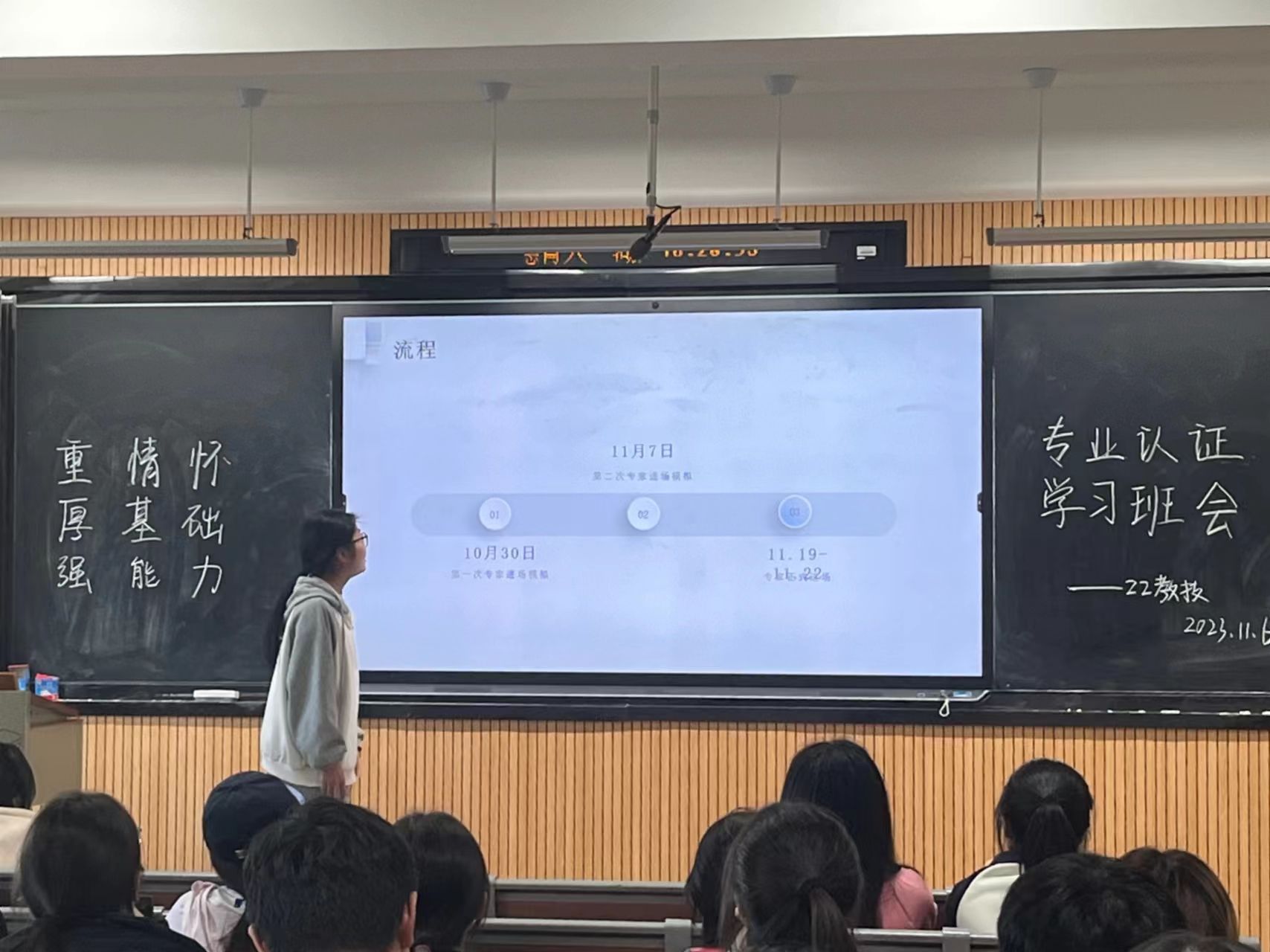 (通讯员 王玲珑 王如心)为提升教育技术班同学对本专业的认识,加强对专业认证内容、程序的理解与把握,11月6日下午,教育科学学院2022级教育技术班开展了学习专业认证相关知识的主题班会。本次班会由系主任周炫余指导、班长王玲珑主持。