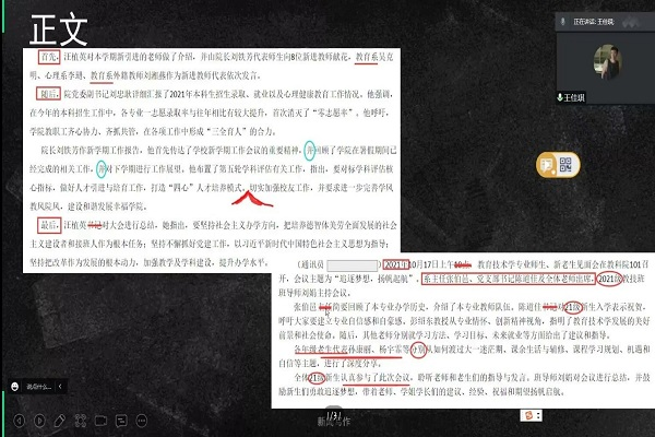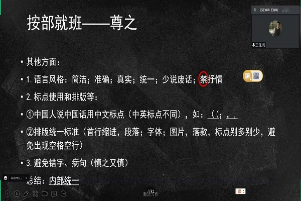 (通讯员 白晓坤 曾文巧 向红举)11月6日晚,教育科学学院青年传媒中心在腾讯会议平台组织了新闻稿写作培训会。此次会议由校新闻网原学生负责人王佳琪主讲。