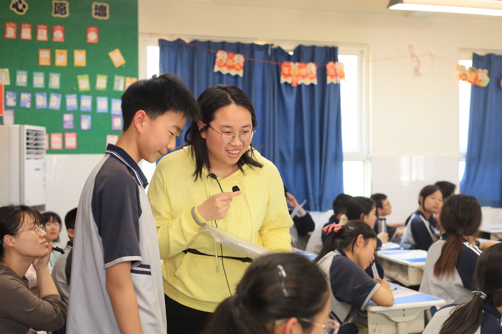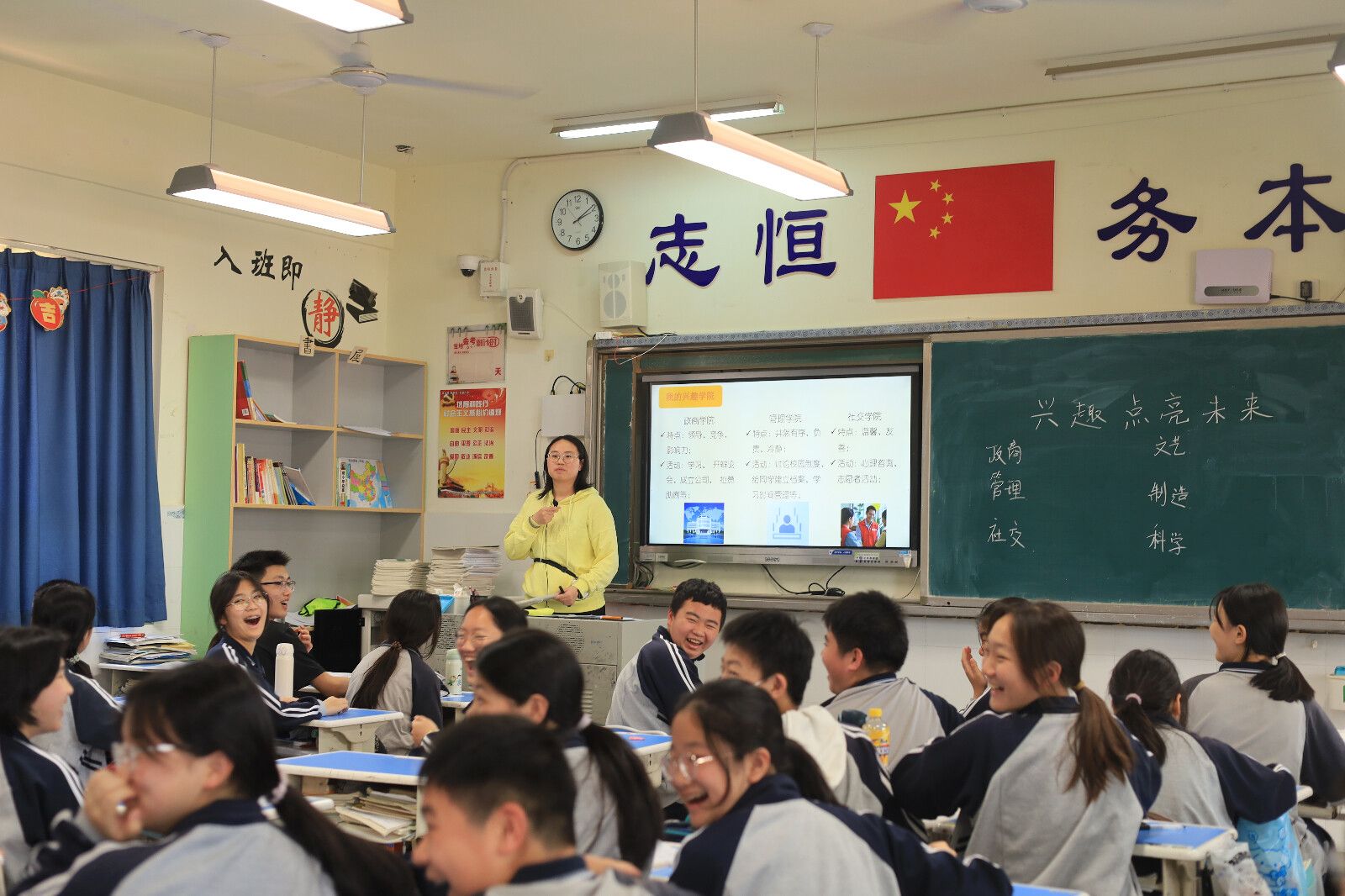(通讯员 谭蕊玉 刘燕)4月17日上午,教育科学学院赴师大滨江学校实习队顺利开展第四次课堂教学活动。实习队员曾妍以“兴趣点亮未来”为主题,为初二学生带来了一堂生动有趣的心理课。