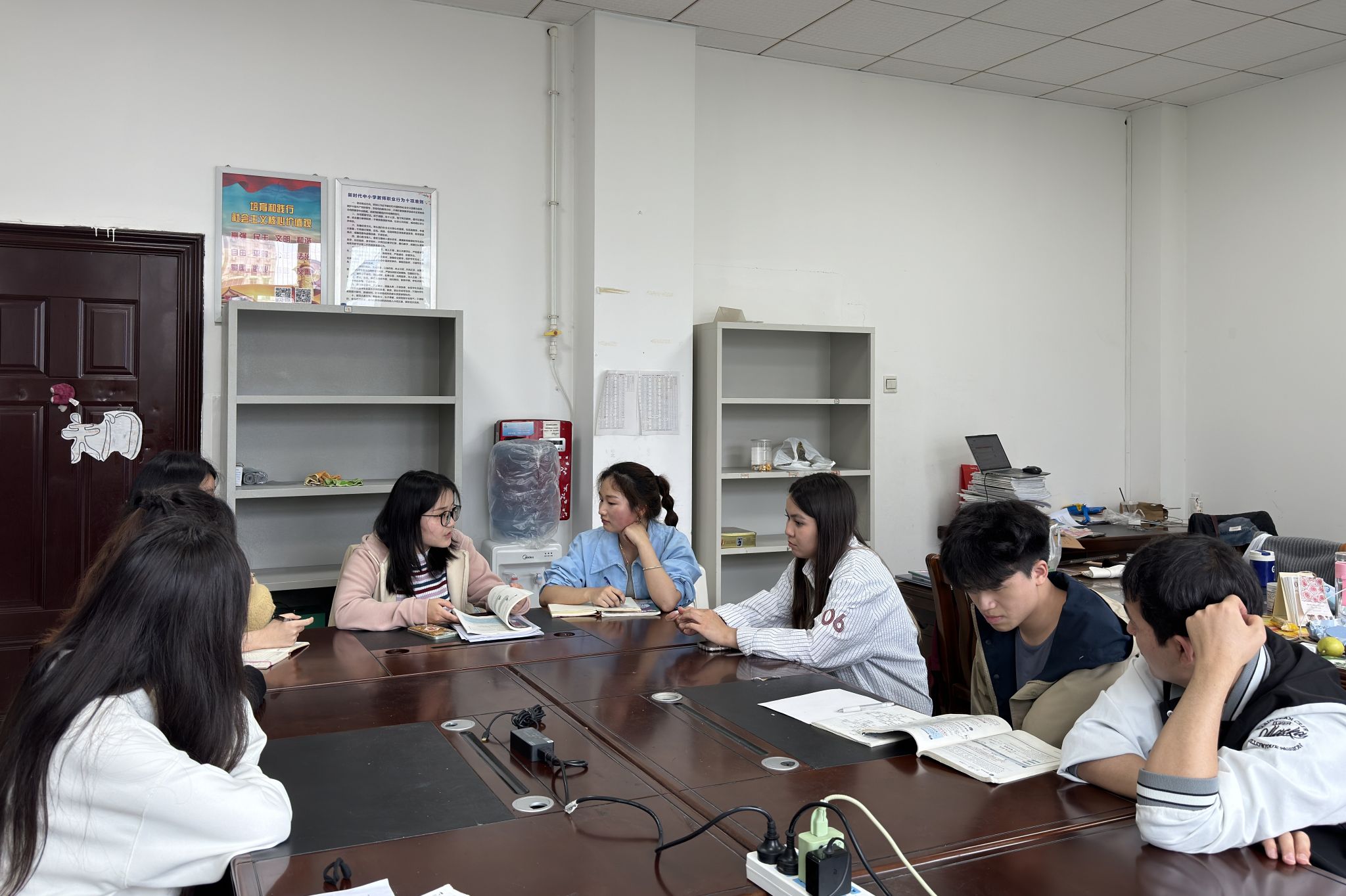 (通讯员 陈洋燕 张丽汶 吴俊华)4月24日上午,教育科学学院赴长沙市中雅培粹学校实习队于行政楼605教室开展第七次集体评课活动。实习队员邹世丹围绕“中华人民共和国主席”展开授课,指导老师李新、陆小波以及北校区初二组实习队员参与观摩并点评。