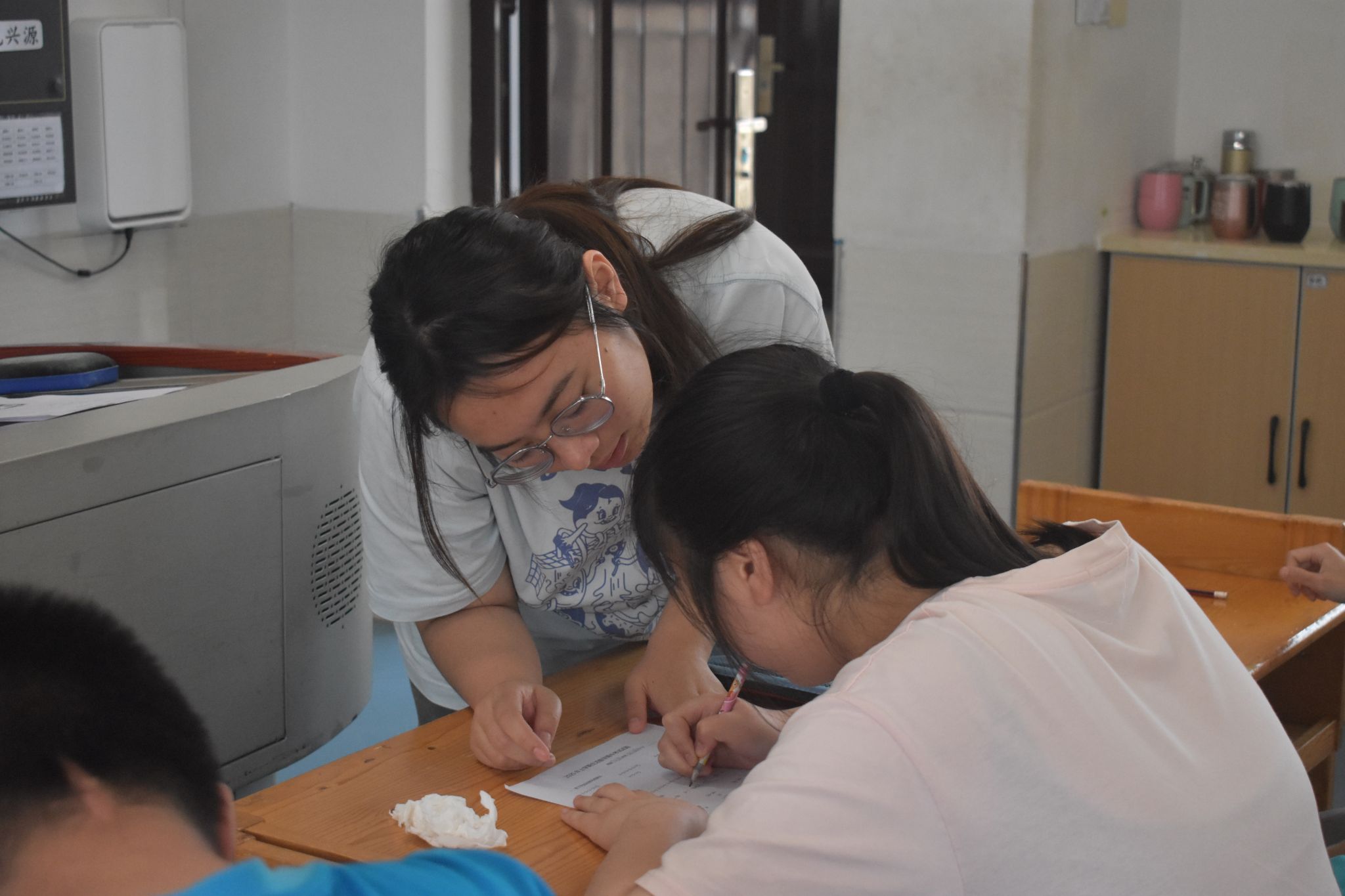 考试期间,实习队队员们严格遵循考试流程规范执行监考任务,以高度的责任感和专业精神,采用灵活的监考方式,对接受能力较弱的班级采取单人单考,以便给予充分指导;对基础稍好的班级则采用统一发卷考试,在监考过程中时刻关注学生状态,根据学生不同状况进行辅助。