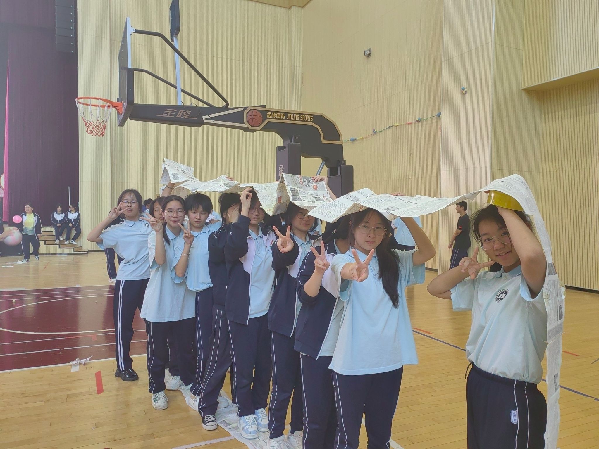 活动现场,多个趣味项目有序开展。在“数字集结号”游戏中,同学们围成大圈慢跑,主持人报数后,大家迅速抱团。现场气氛热烈,此游戏有效锻炼了同学们的反应速度和团队协作意识。“心有千千结”环节充满挑战,同学们手拉手围成圈,散开后重新握住原来的手形成“结”,再通过跨、钻等方式解“结”,极大提升了团队沟通协作能力。“车轮滚滚”项目里,学生分组制作“履带”并共同推动其向终点前进。过程中“履带”偶有断裂,同学们冷静修补,团队凝聚力得到提升。“气球接力”环节趣味十足,各小组用头、肩、膝盖传递气球,大家相互配合,展现出高度的默契。