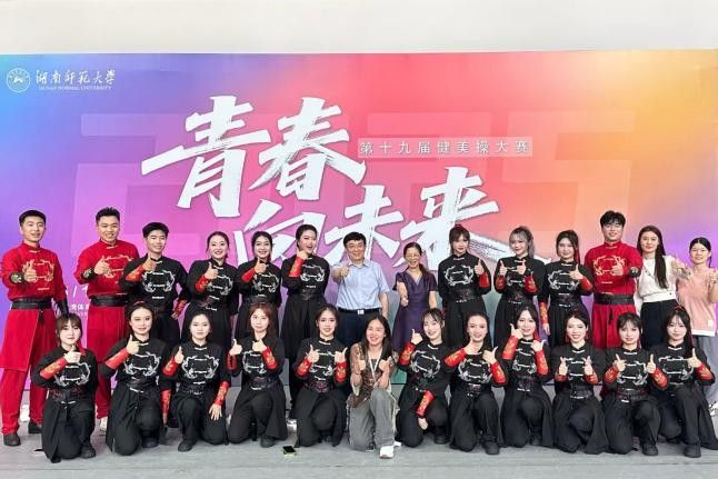 (通讯员 向锦霖 黎思娆 尹佳怡)为丰富校园文化生活,彰显我校学子的风采,5月16日晚,湖南师范大学第十九届“青春向未来”健美操大赛在江湾体育馆举行。教育科学学院(简称“教科院”)共21名师生参与其中。经激烈角逐,教科院以9.82分的成绩在大赛中荣获特等奖。