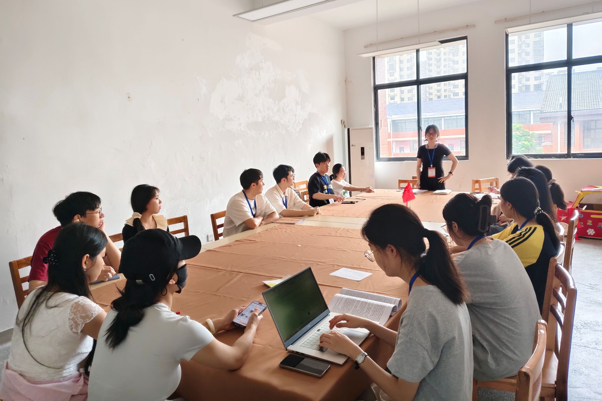 各组负责人分别就实习期间的听评课、备课、宣传工作、出勤管理、安全保障及财务收支等方面进行了详细汇报,各组展示了实习过程中的亮点与成果,同时也反思了存在的不足。黎盼旗队长综合各组汇报情况,全面总结了实习队的工作成果与不足之处,特别提出了在教学实践、班级管理以及团队协作等方面的经验与教训。最后明确了实习材料总结与归档的重要性,要求每位队员认真整理实习期间的各类材料与心得,确保实习成果得到充分展现。