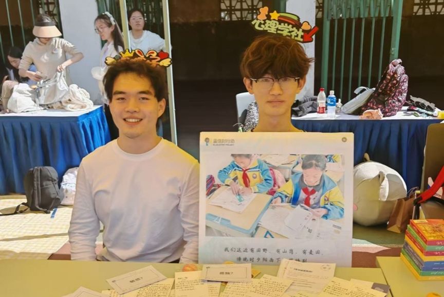 在活动现场,工作人员向同学们介绍了蓝信封项目内容及通信大使的资质要求,不少同学在了解之后扫码关注了“蓝信封邮筒”公众号,并在指引下通过了理论考试,成为预备通信大使。为让同学们直观感受书信陪伴的意义,活动还设置书信体验环节,提供模拟“乡村孩子烦恼”的信件背景卡与明信片。工作人员引导同学们现场撰写回信,并提供写作思路建议,让同学们体验书信陪伴的互动过程。完成体验的同学均领取了蓝信封机构提供的徽章或童声卡片作为纪念。