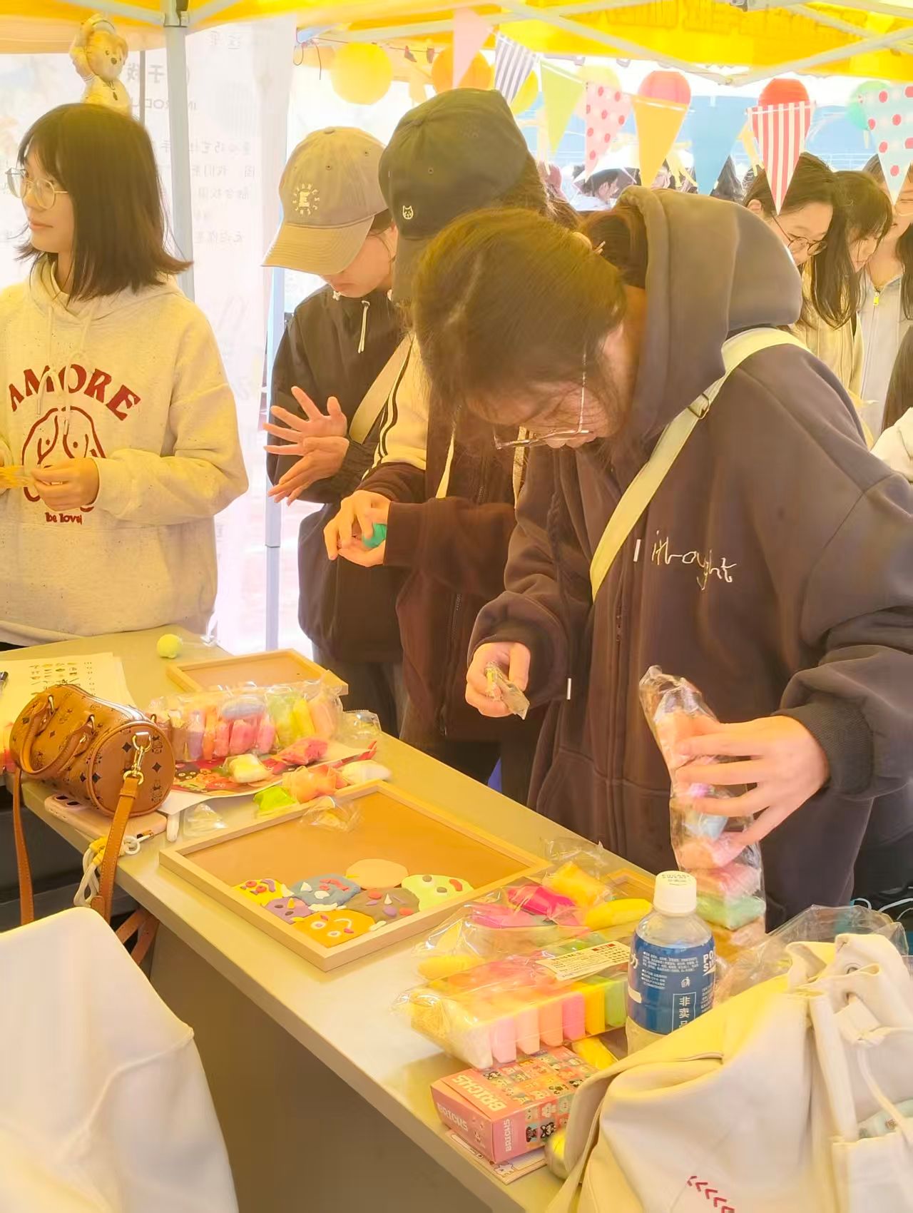 招新现场,教科院五大社团以特色活动吸引学生加入:麓山教育学社推出“繁简对对碰”文化互动,通过游戏推广汉字文化;饮食研习社打造“特色美食+趣味游戏”联动体验,提供特色小吃;定向运动协会设置手工风筝制作、传统投壶等趣味环节,吸引学生体验传统技艺;童心巧艺社带来趣味积木搭建与DIY表情包粘土创作,展示动手乐趣;心理学社开展蓝信封“儿童烦恼”公益行动,呼吁关注儿童心理问题。活动现场,教科院学社管工作人员与各社团干事耐心讲解社团特色,邀请学生加入,现场欢声笑语,气氛活跃。