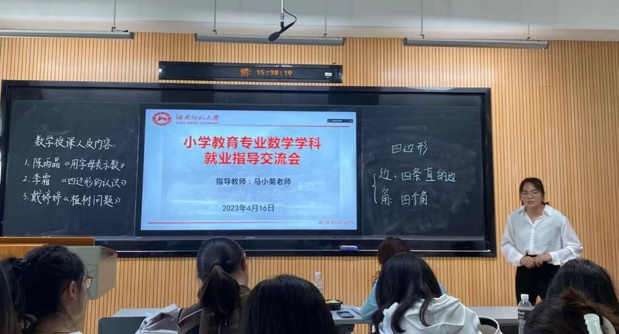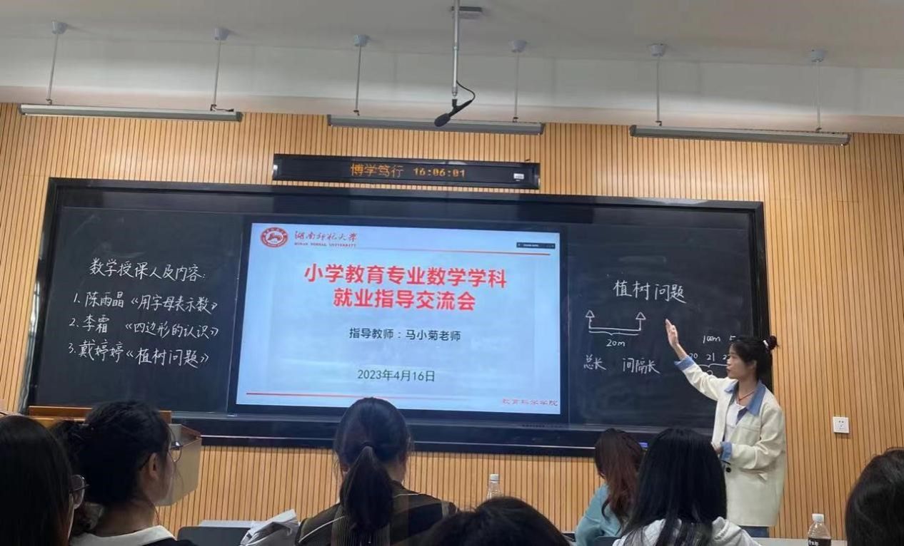 (通讯员 龙丹丹 尉莉银)2023年4月16日下午湖南省数学特级教师马小菊应我院邀约,在教科院214教室面向40余名研究生对教师应聘试讲事项做了详细地指导。马小菊老师是我校小学教育专业的实践型硕士生导师。参与活动的研究生来自21级、22级小学教育专业,刘德华教授主持本次的活动。