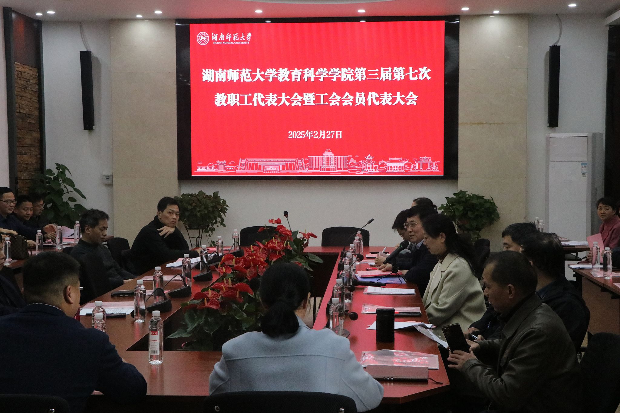 (通讯员 王曼宁 杨娟)2025年2月27日下午3点,教育科学学院第三届第七次教职工代表大会暨工会会员代表大会在学院7楼会议室隆重举行。此次大会在学院党委和工会的精心筹备下,汇聚了全体教职工代表、工会会员代表的智慧与力量,共同回顾过往、展望未来,为学院发展谋篇布局。会议由学院党委书记向发意主持。
