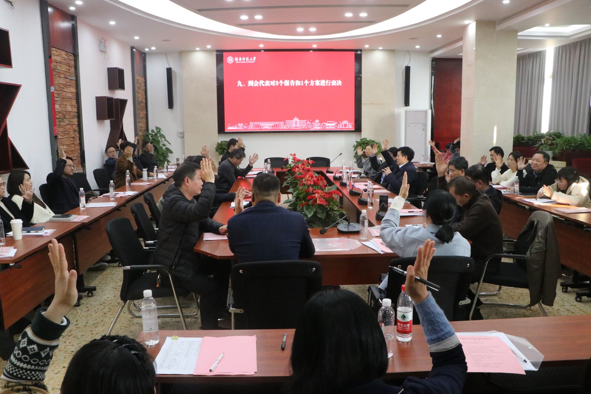 在工作报告环节,刘铁芳院长和赵亮副院长分别作学院工作报告和财务工作报告。院工会主席张卫民作《2024年度院工会工作报告》,回顾了过去一年工会在教职工关怀、文体活动开展、困难帮扶等方面的工作。张卫民主席二十五年如一日扎根工会事业,为学院工会发展无私奉献,赢得了全体代表的热烈掌声和崇高敬意。
