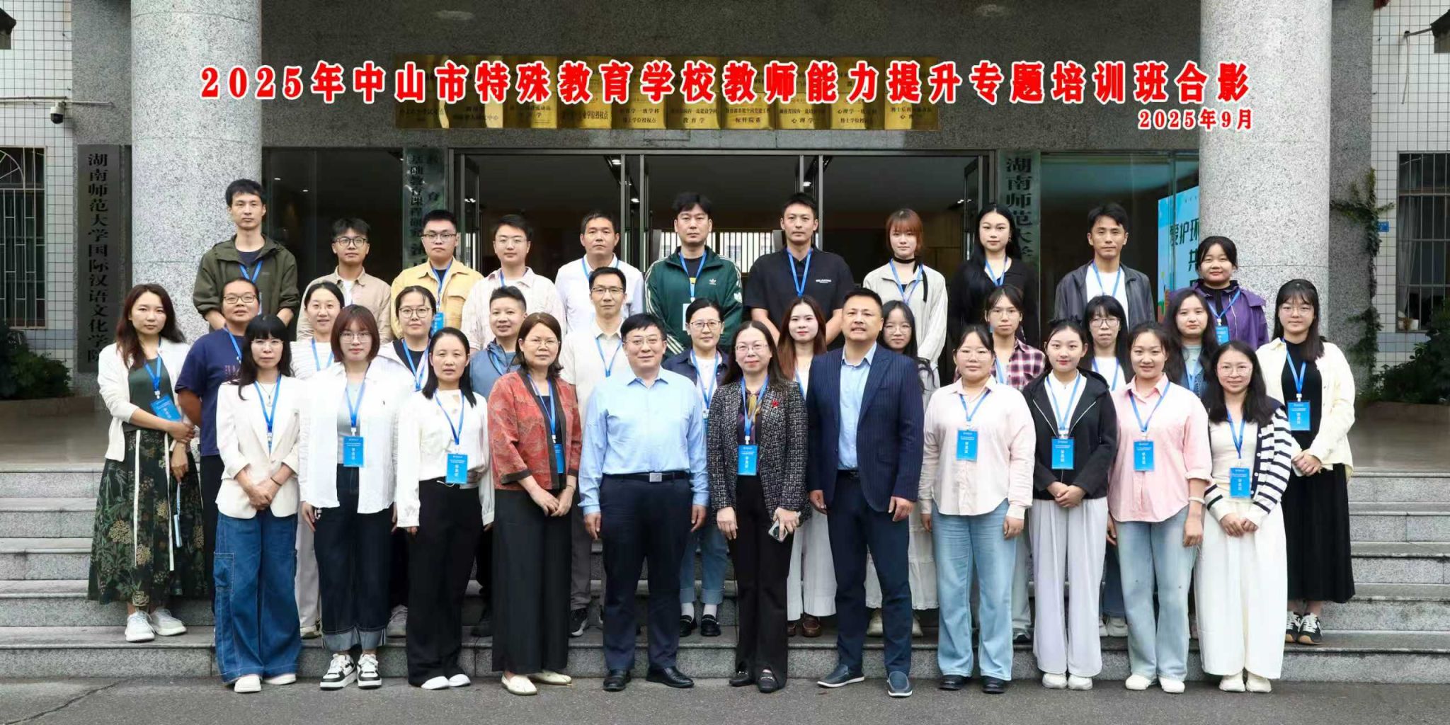 2025年9月22日上午,由湖南师范大学教育科学学院承办的“2025年中山市特殊教育学校教师能力提升专题研修班”在学院102报告厅正式开班。中山市特殊教育学校教学副校长陈云华、教研室主任马天宇,湖南师范大学教育科学学院党委书记向发意出席开班典礼。