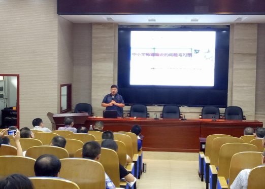 7月23日上午8点30,湖南师范大学教科院陈牛则教授带来了一场非常精彩的讲座,题目为《学校特色与特色学校创建》。陈教授用亲切幽默的语气、抑扬顿挫的语调;用摆理论,举个例的方式,点面结合,深入浅出地剖析了“学校特色的背景与意义”、“学校特色与特色学校两者概念的辨析”、“学校特色的本源”、“学校特色的结构与模式”、“形成的过程与条件”五大板块的内容。讲座期间,学员们边听边作笔记,写心得,写工作反思,更是积极与陈教授进行多次互动。课堂变得生动而活泼,丰富而有趣。