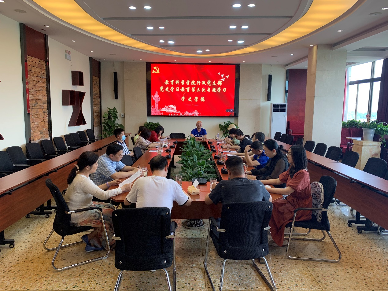 (通讯员 周莹)6月2日下午,教科院行政党支部在学院七楼会议室召开支部大会,就“学史崇德”进行学习交流。会议由支部书记杨建辉主持。