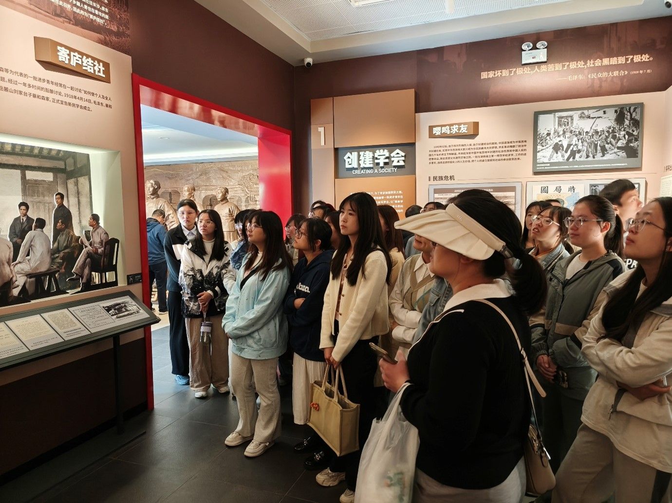 学员们在讲解员的带领下有序参观了陈列馆,从“革新学术,砥砺品行,改良人心风俗”到“改造中国与世界”的学会宗旨变更中感悟老一辈革命家们的志向远大;从国内求索到跨越大洋的学会成员足迹中领略老一辈革命家们的世界眼光;从“纯洁、诚恳、向上奋斗精神、服从真理”的会员标准中体悟老一辈革命家们坚守的“主义的结合,而非徒然是人的聚焦,感情的结合”。