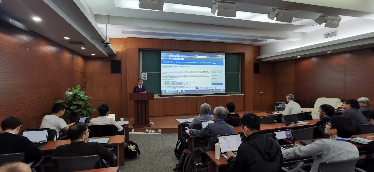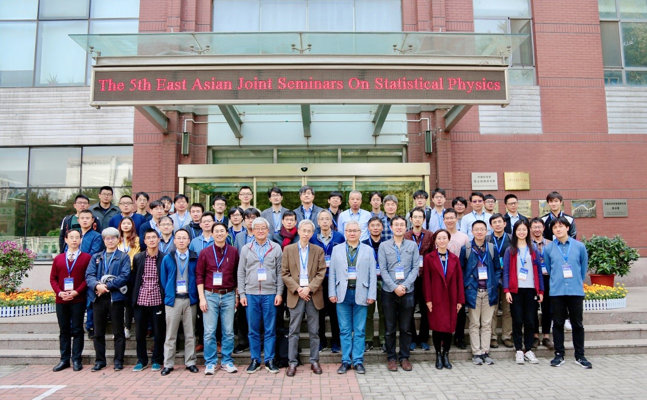 第5届东亚统计物理联合会议(5th East Asia Joint Seminars on Statistical Physics)于2019年10月22-25日在中国科学院理论物理研究所成功举办。会议共邀请了中国大陆地区及日本、韩国、台湾、香港等地区的46位活跃于统计物理第一线的科学家作学术报告和展示学术墙报,会议总参会人数超过80人,其中包括日本代表13人、韩国代表12人、台湾地区代表6人、香港地区代表2人、北京及中国内地其他高校代表约50人。邀请报告人有量子模拟退火算法的发明人、自旋玻璃 Nishimori 线概念的提出者Hidetoshi Nishimori 教授,非平衡随机热力学国际知名专家、韩国高等研究院领军学者 Hyunggyu Park 教授,软物质统计物理国际知名专家、中央研究院及中央大学陈宣毅教授,非平衡涨落理论国际知名青年学者、北京大学全海涛教授等共计35人。会议国际组委会主席为北京计算科学研究中心及香港浸会大学汤雷翰教授,中国科学院理论物理研究所周海军研究员担任会议工作委员会负责人。