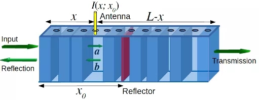 此工作用微波实验对理论预言进行了检验(附图)。为了制备非均匀无序介质,用陶瓷片和特氟龙U-通道空气隔离器随机地填充波导管,然后把反射镜嵌入波导管中。一根连接到矢量网络分析器的天线被插入波导管以测量该点的微波波场。对于每一组固定的(x,x0),对100个无序用品进行数据采集。实验测量表明,当x固定而x0在前方或后方移动时,波能量在x的统计分布不发生任何变化,从而验证了不变原理的基本预言。当x0固定而x扫过整个波导管时,可测得波能量的空间结构;测量结果证实了波能量扩散存在普适标度行为。