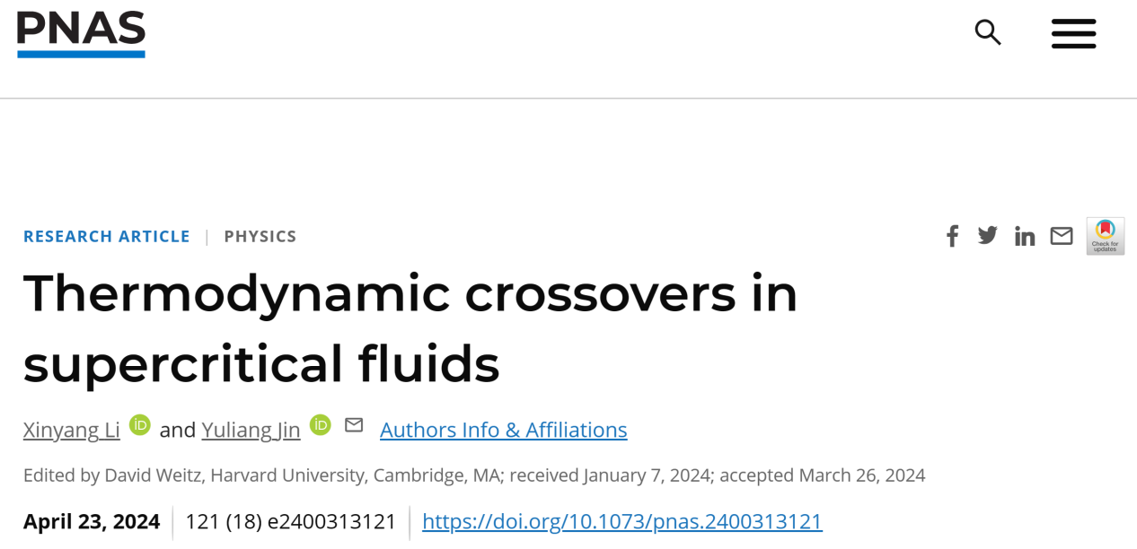 该论文“Thermodynamic crossovers in supercritical fluids”于近日发表于《美国科学院院报》(PNAS)。本项目得到国家自然科学基金、中国科学院等经费支持。部分计算在中国科学院理论物理研究所先进计算平台完成。