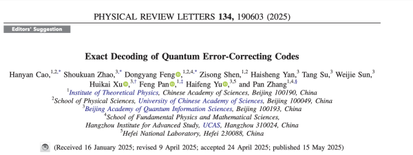 近期,中国科学院理论物理研究所张潘研究员及其博士生曹涵彦、沈子松,国科大杭州高等研究院硕士生冯东阳,新加坡科技设计大学助理教授潘峰与北京量子信息科学研究院赵寿宽,严海生,苏唐,孙伟杰,徐晖凯,于海峰等合作者,共同解决了这一难题。他们的研究成果“Exact Decoding of Quantum Error-Correcting Codes”近期发表于《Physical Review Letters》,并被选为“编辑推荐”。该研究利用统计物理中伊辛模型的严格解,提出了一种名为“Planar”的解码算法,首次实现了在电路级噪声下重复码的严格最优解码,并精确求解了电路噪声下重复码的纠错阈值。张潘研究员与合作者将该方法应用于谷歌的实验数据以及量子院的超导量子芯片实验,获得了比经典MWPM算法更低的逻辑错误率,并指出谷歌实验中至少有四分之一的错误并非源自其声称的未知错误源,而是由于所采用的解码算法本身。