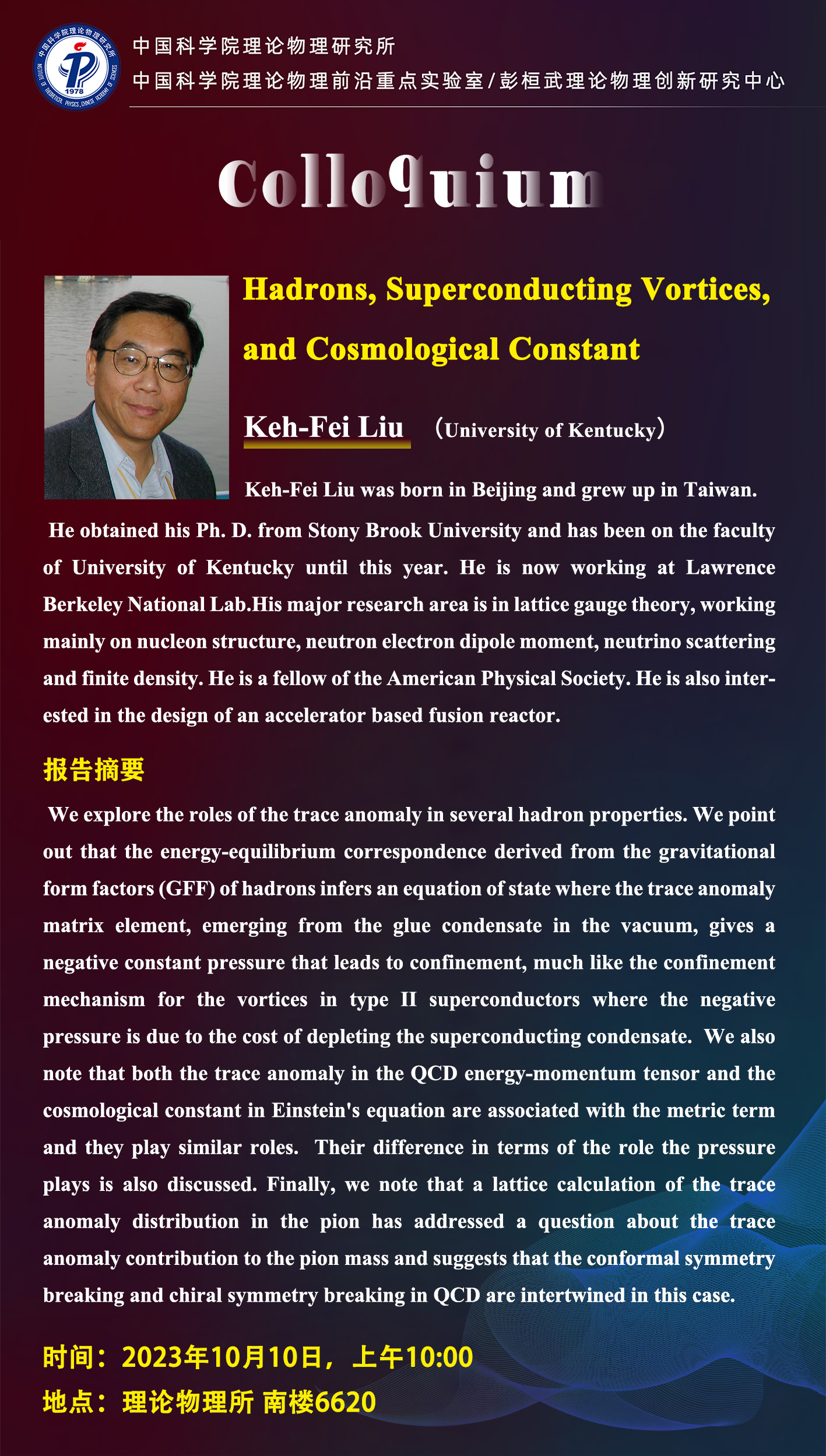 - Speaker报告人 Keh-Fei Liu (University of Kentucky)