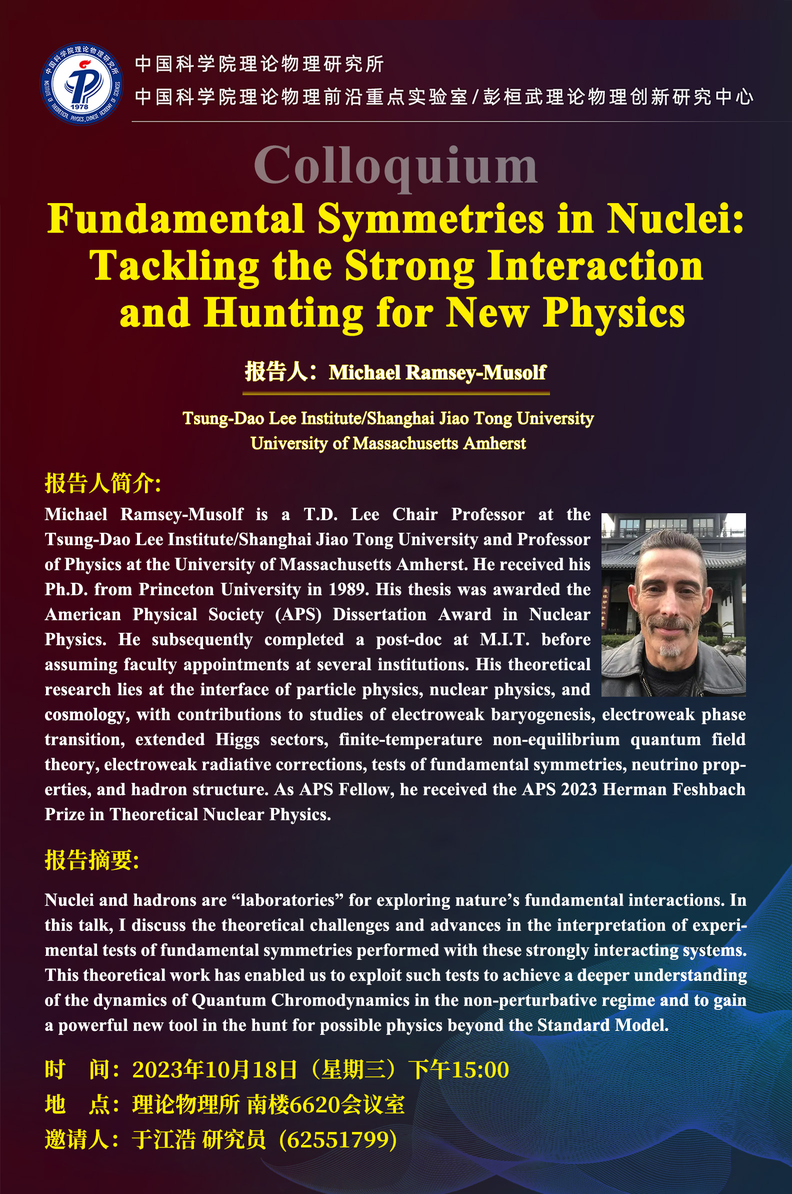 - Title题目 Fundamental Symmetries in Nuclei: Tackling the Strong Interaction and Hunting for New Physics