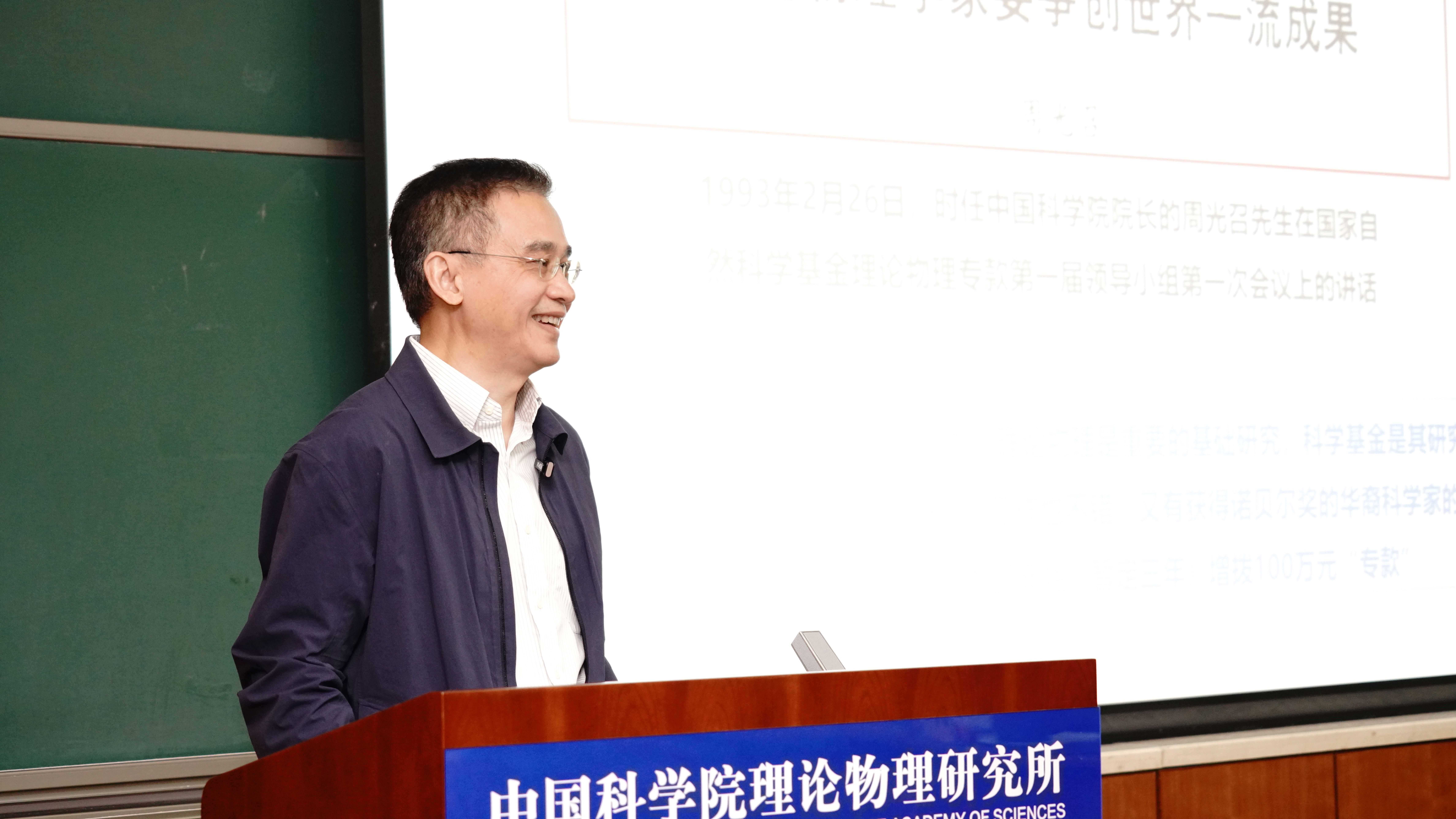 国家自然科学基金委数理学部主任陈仙辉院士,中国工程物理研究院北京应用物理与计算数学研究所王建国所长,中国工程物理研究院贺贤土院士、孙昌璞院士,清华大学朱邦芬院士,中国科学院物理研究所向涛院士,首都师范大学吴可教授,北京大学李定平教授,以及理论物理所欧阳钟灿院士、吴岳良院士、张肇西院士作为特邀嘉宾出席会议并发言。理论物理所何祚庥院士也为此次研讨会提前录制了发言视频。研讨会由理论物理所所长周善贵、党委书记樊志军和研究员周宇峰主持。来自全国高校和科研机构的师生共100余人参加了研讨会。
