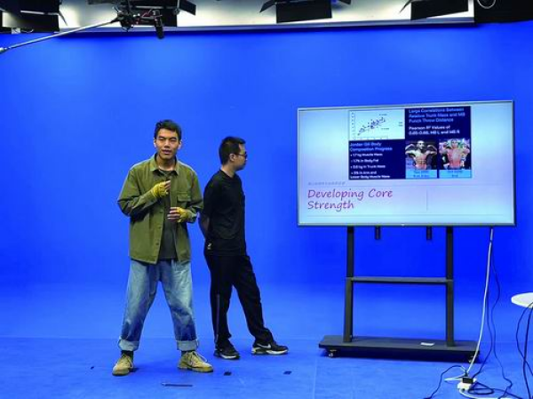 直播中,黄佳志(左)和韩雨轩讲解如何打出更重的拳。戚金葆/摄