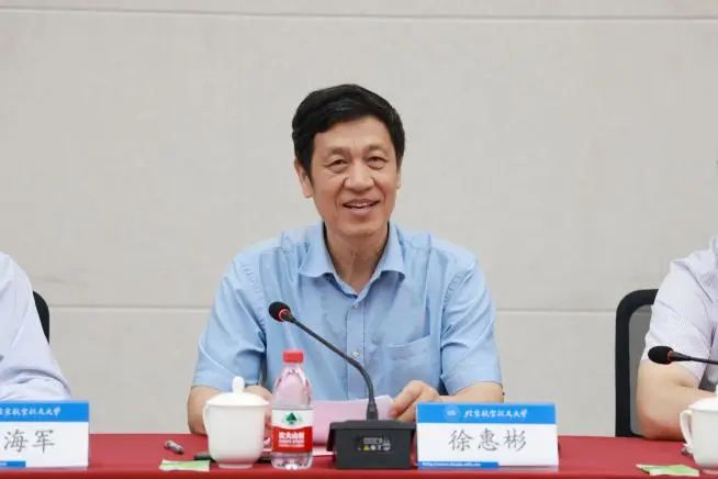 徐惠彬对蔡荣根、邹冰松一行表示热烈欢迎。他指出,理论物理研究在自然科学研究中具有重要意义、在国家科技发展战略中占据重要地位。北航为国而生、与国同行,以服务国家为最高追求,始终围绕国家重大战略需求开展人才培养和科学研究。他表示,中心的成立旨在汇聚国内外高端人才,进一步提升青年教师及研究生的培养水平,全面提升服务国家重大战略需求和探索国际科学前沿的竞争力。希望以此次中心建立为契机,与理论物理所密切联系、深化合作、高效互动、优势互补,聚焦重大前沿科学问题,促进交叉学科发展,探索创新型人才的培养模式,为国家大科学工程提供有力支撑,为实现高水平科技自立自强做出新的更大的贡献!