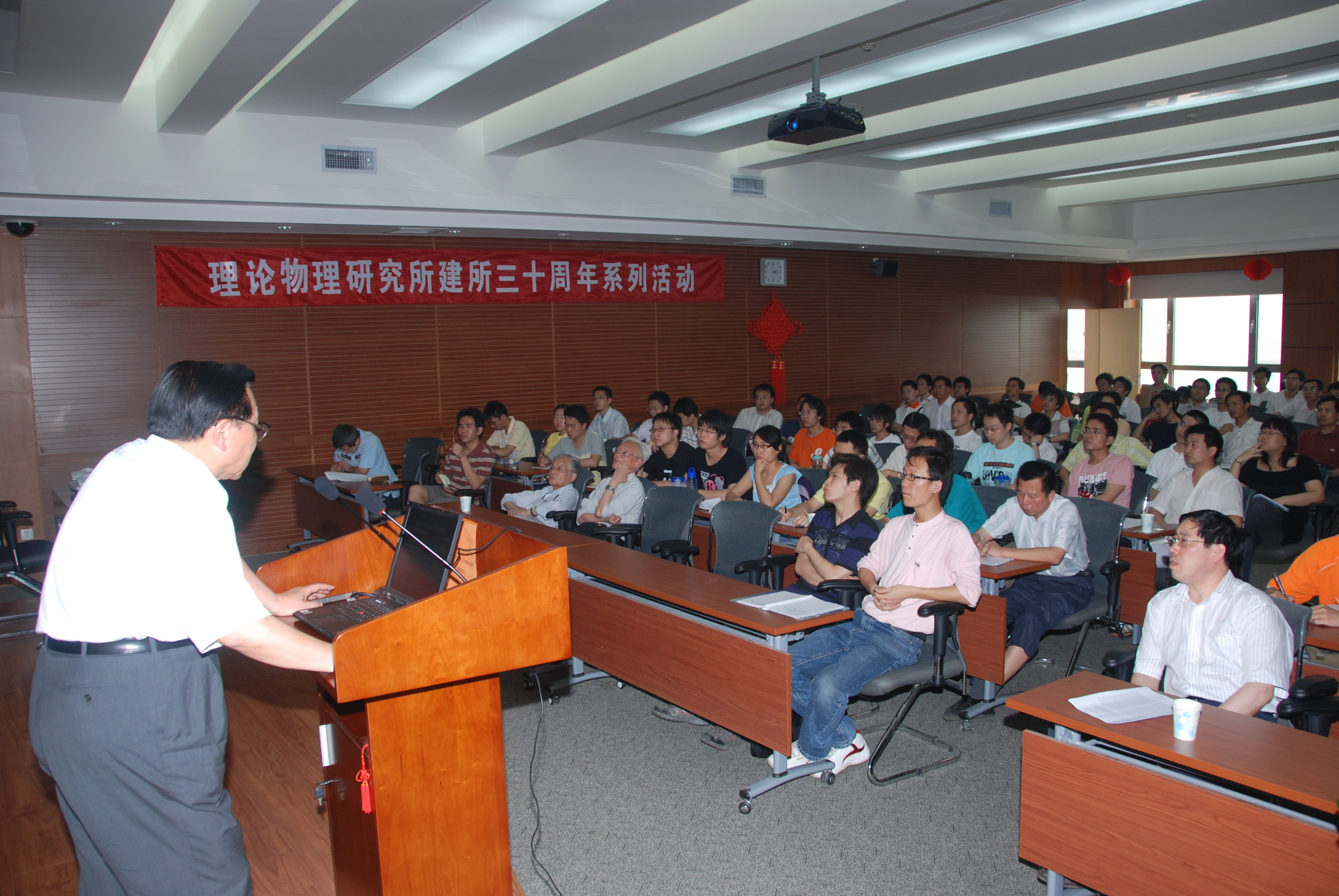 报告会由理论物理所所长吴岳良院士主持,欧阳钟灿院士、何祚庥院士、戴元本院士、陈晓松副所长等出席报告会。