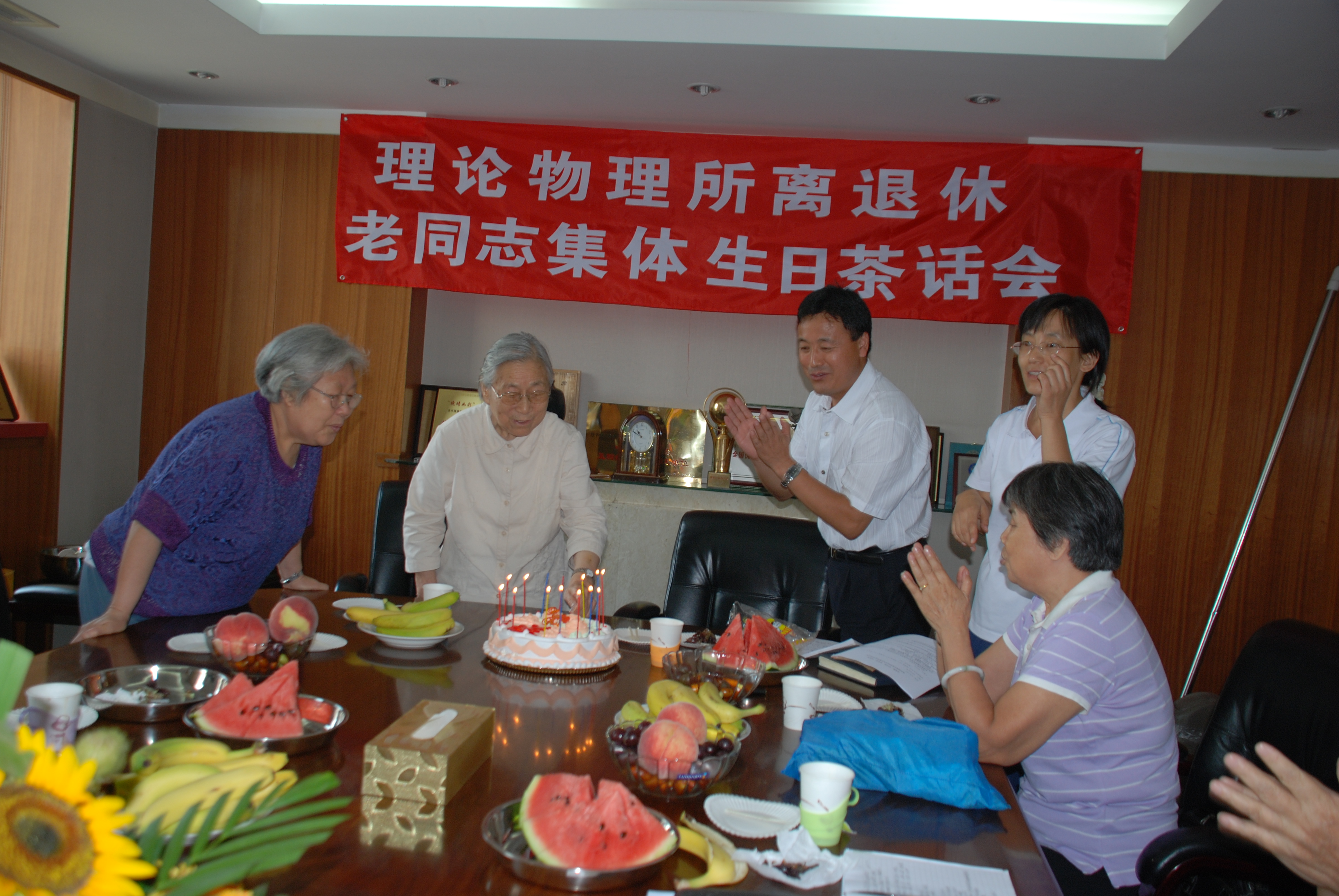 2007年9月6日上午,理论物理所召开了以“贺健康、促和谐、献余热、同快乐”为主题的离退休老同志集体生日茶话会。